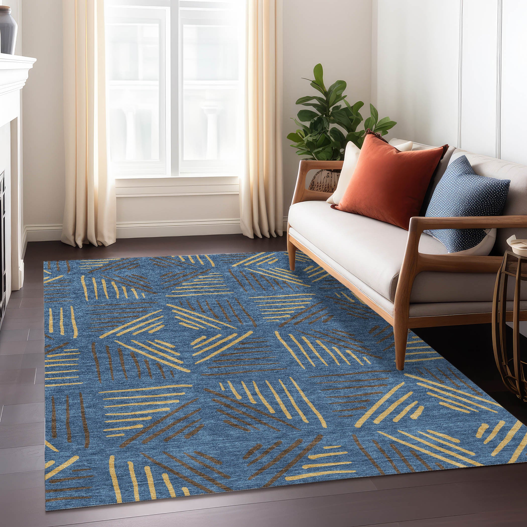 8' X 10' Navy Blue And Gold Geometric Washable Indoor Outdoor Area Rug