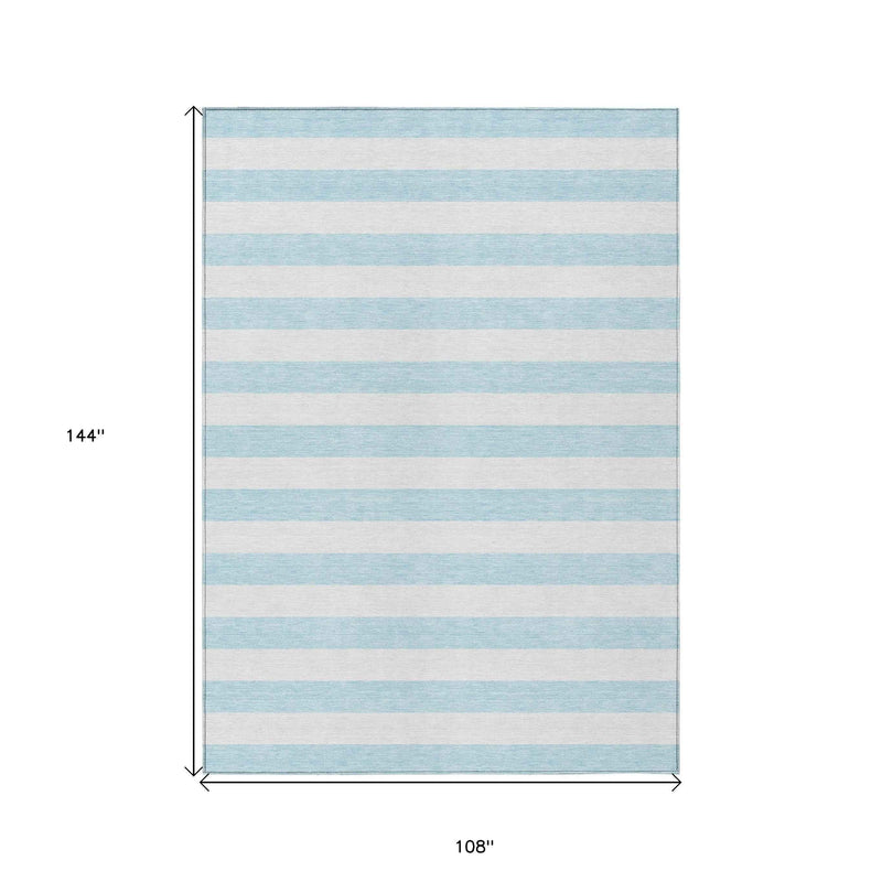 9' X 12' Blue and White Striped Washable Indoor Outdoor Area Rug
