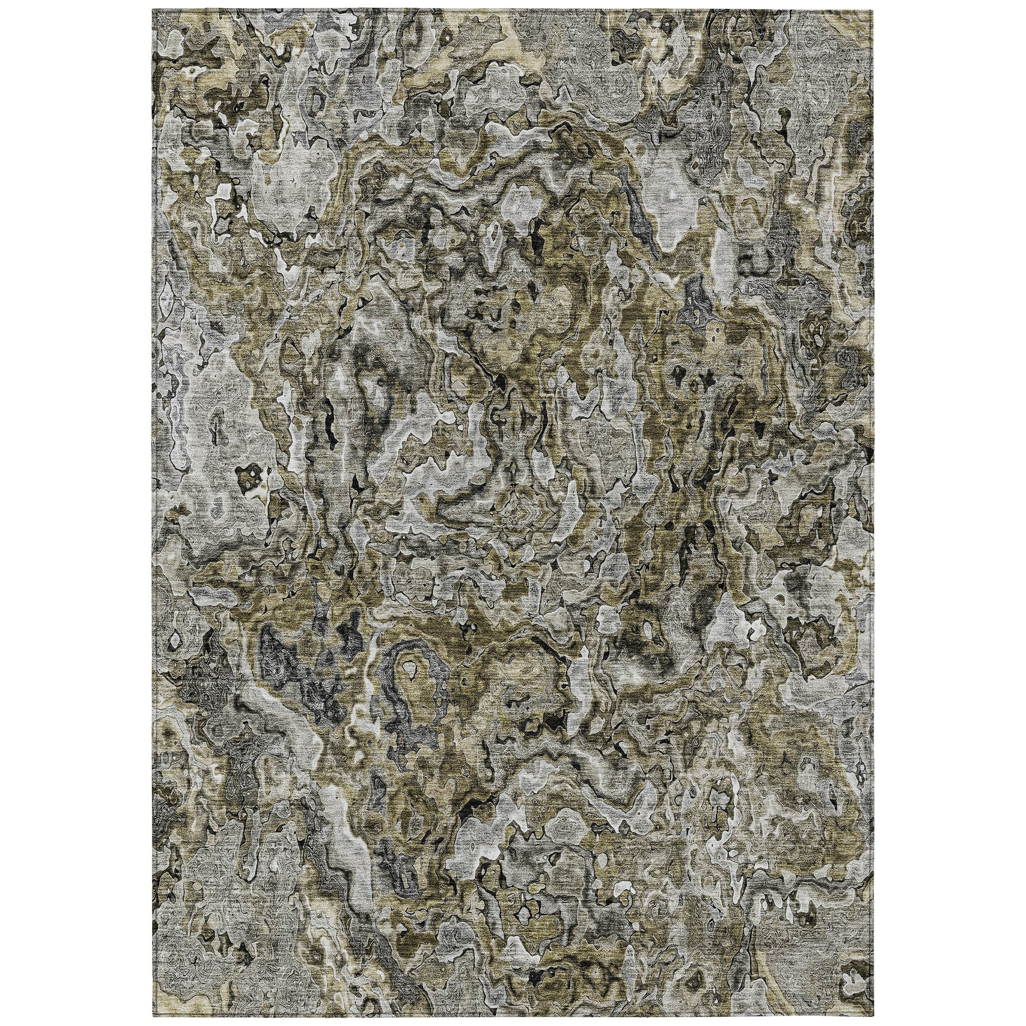 9' X 12' Brown Beige And Tan Abstract Washable Indoor Outdoor Area Rug