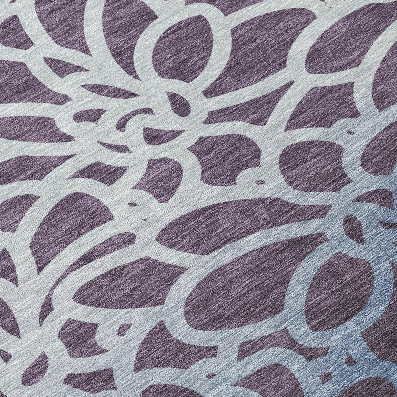 9' X 12' Plum And Blue Botanical Leaves Washable Indoor Outdoor Area Rug