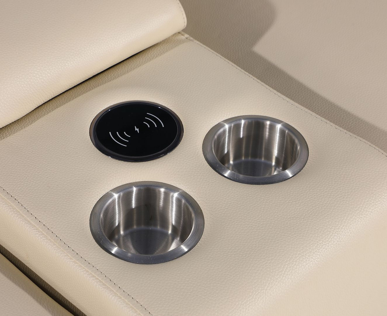 Beige Italian Leather Power Reclining U Shaped Eight Piece Corner Sectional With Console