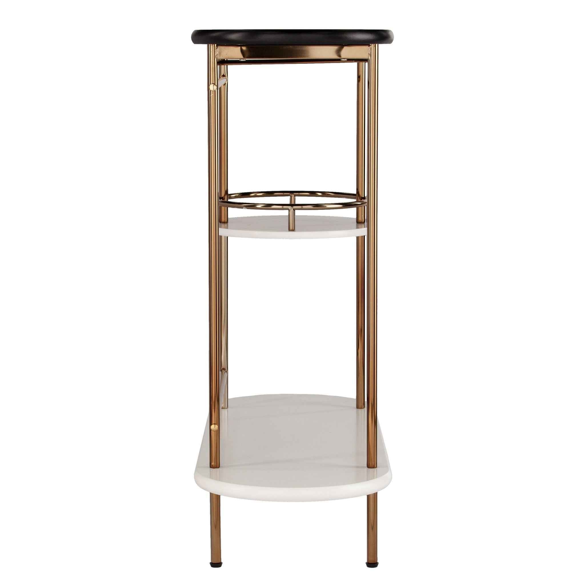 Gold Black and White Metal Oval Bar Cart With Wine Storage