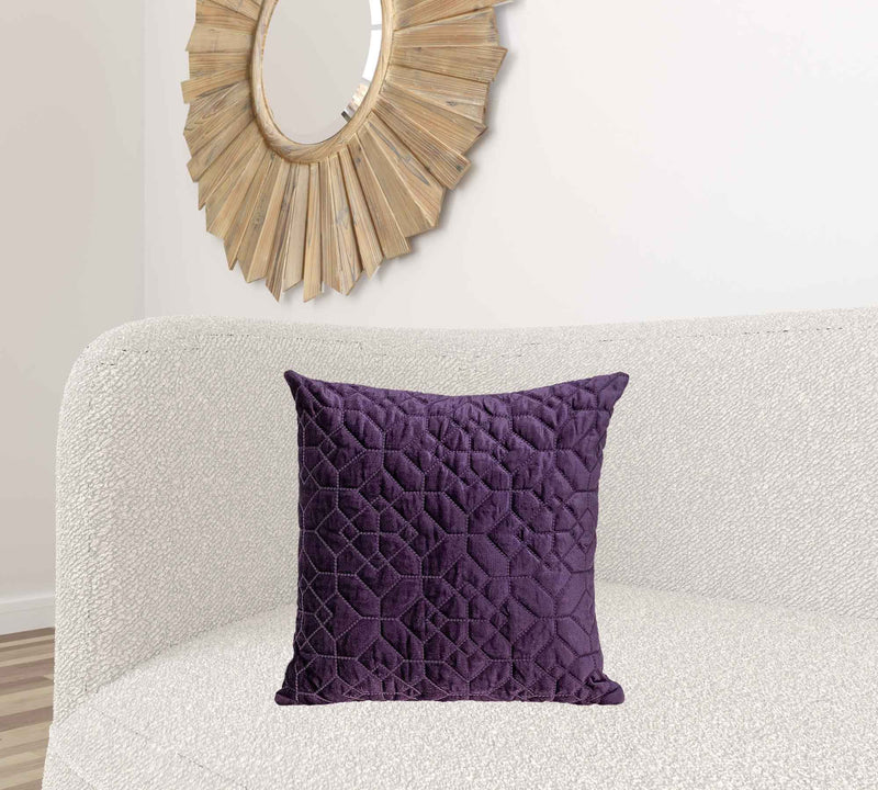 Purple Quilted Velvet Geo Decorative Throw Pillow