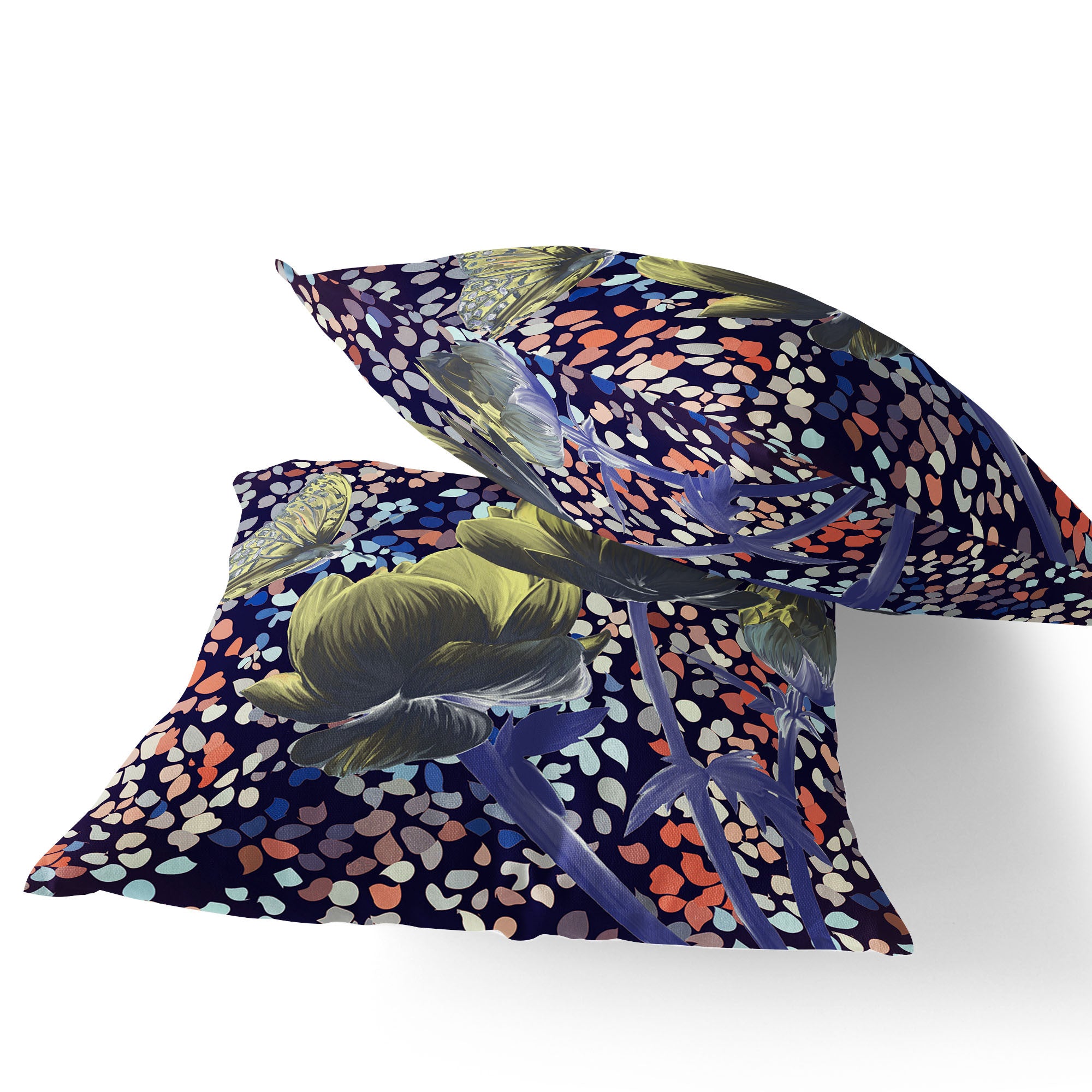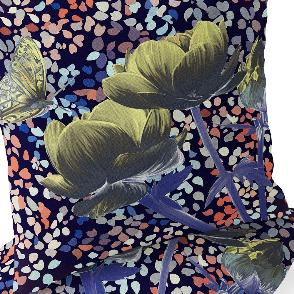 Set of Two 16" X 16" Pink and Purple Butterfly Blown Seam Floral Indoor Outdoor Throw Pillow