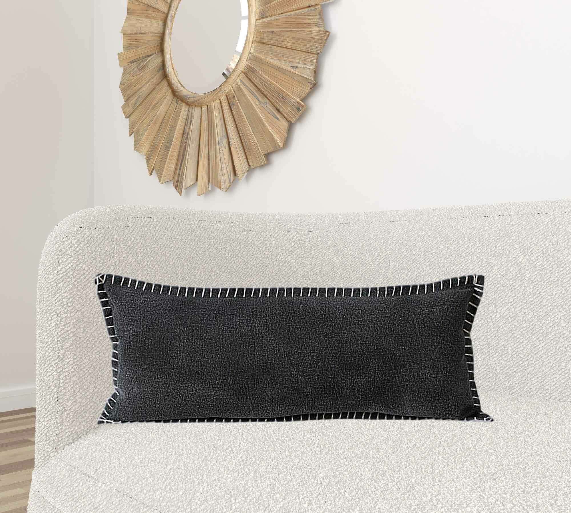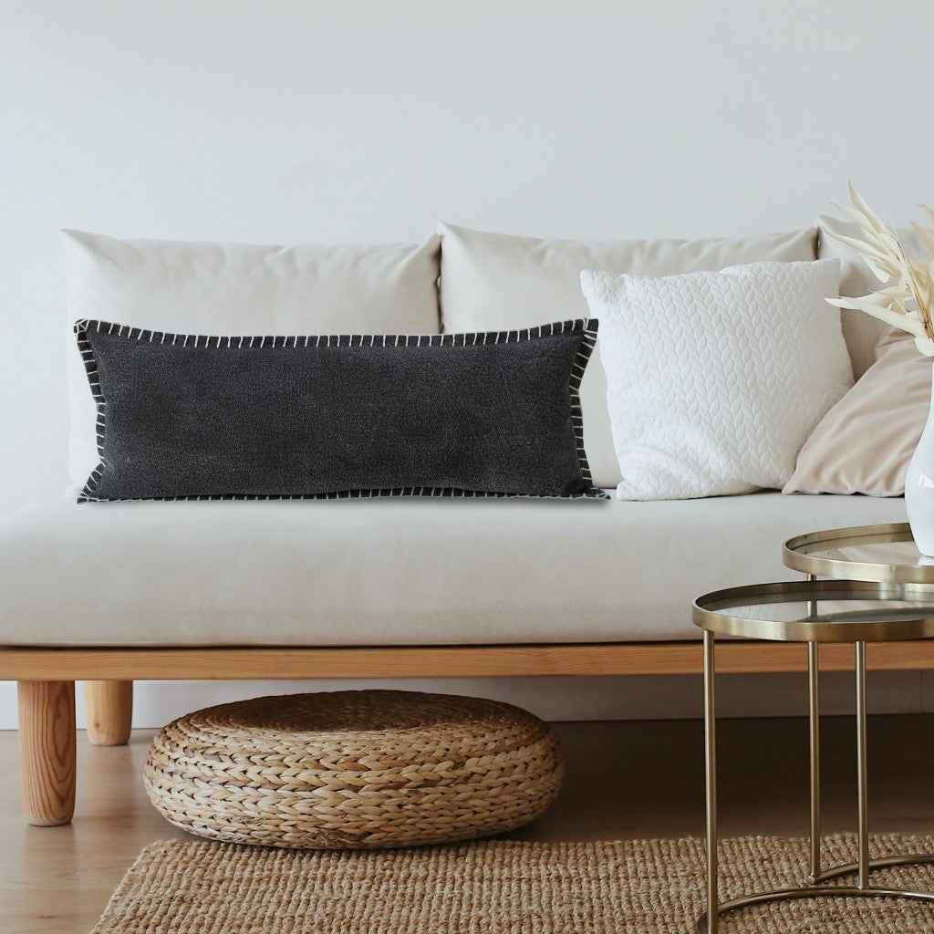 14" X 36" Jet Black 100% Cotton Zippered Pillow