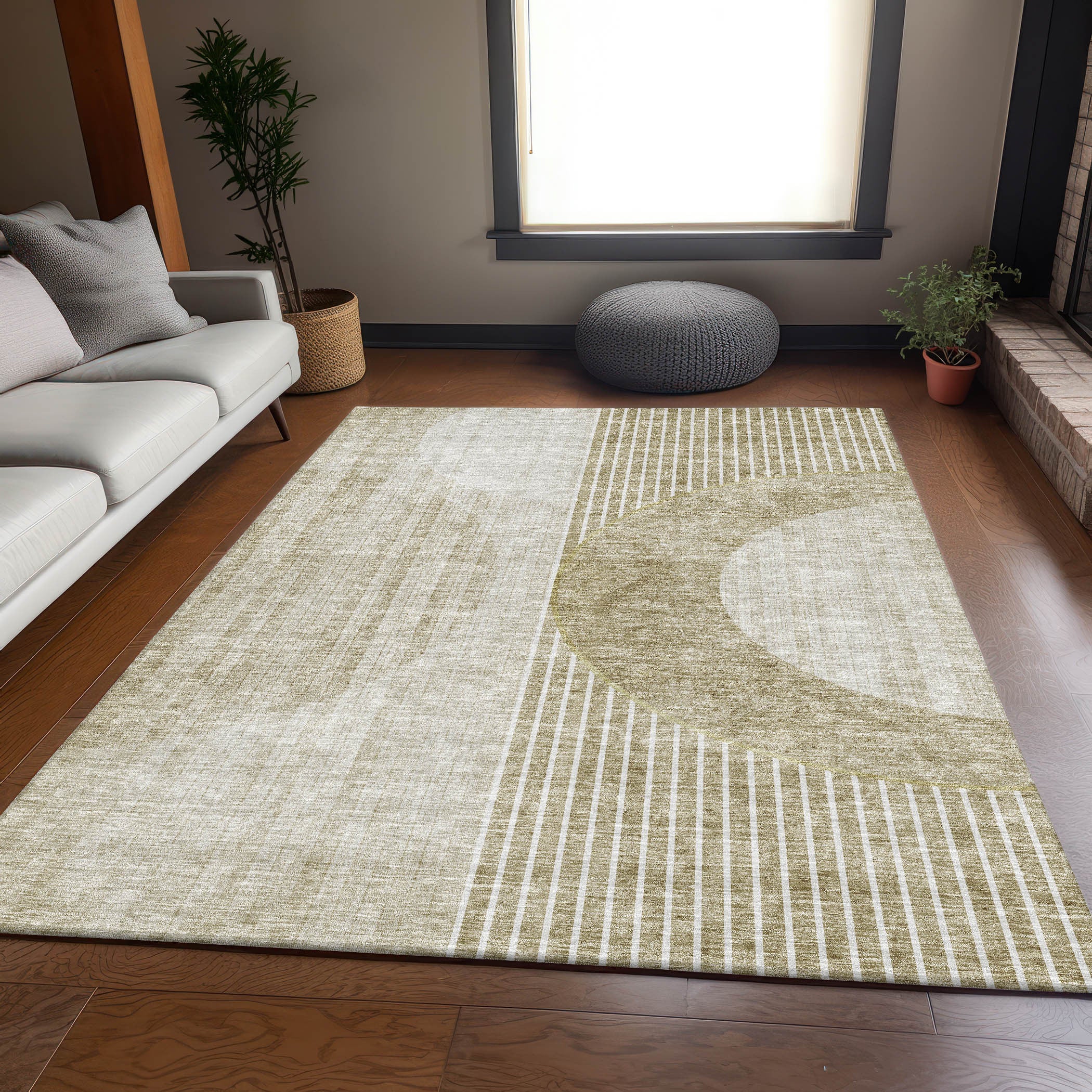 This 3-foot x 5-foot taupe and beige geometric washable area rug with uv protection, is a great way to add warmth to a room. Ideal for spaces with kids and pets, this rug is stain resistant to help repel dirt and spilled liquids. Built to last, this rug crafted from polyester fibers is known for its durability and long lasting appeal. Rugs are a great way to showcase your style, hide imperfections, warm your home and reduce noise. This smaller sized, transitional styled rug is just what you need for your walkway, bedside, in front of door, cabinet, refrigerator, or chair. 36.00-inch h x 60.00-inch w x 0.39-inch d.
