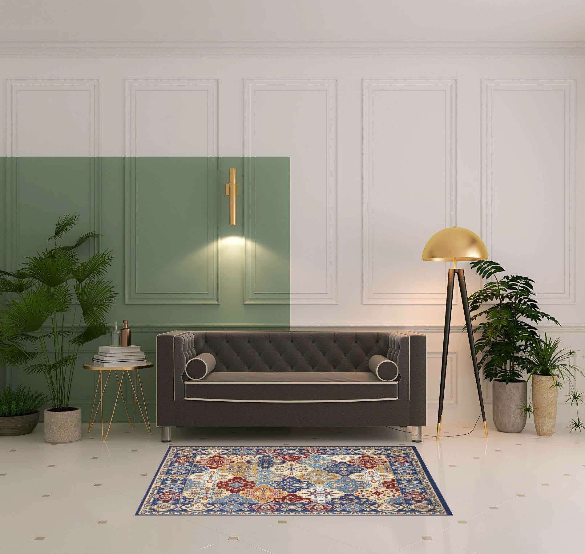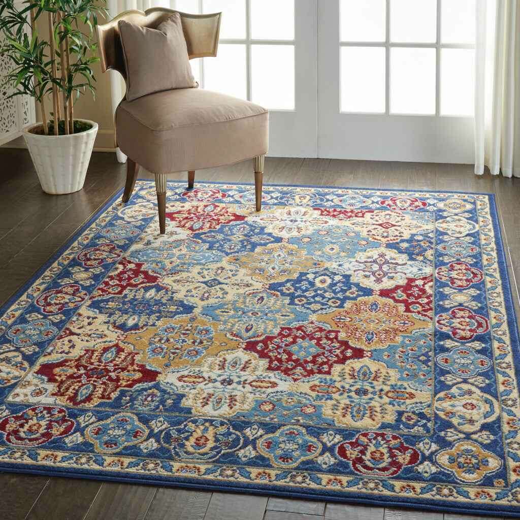 4' x 6' Blue Floral Power Loom Non Skid Area Rug