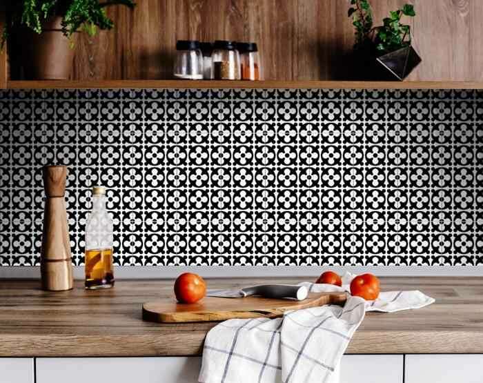 5" X 5" Black and White Medeci Peel and Stick Removable Tiles