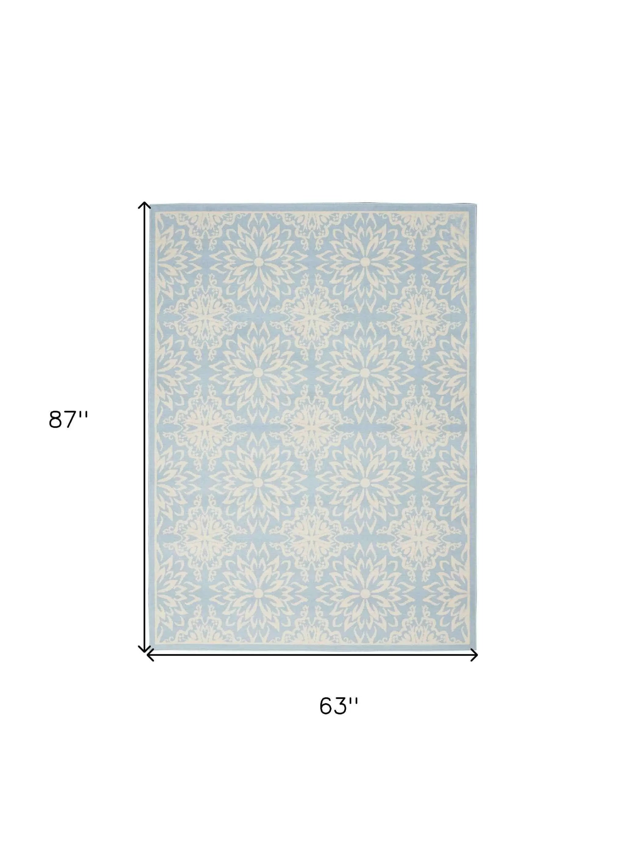 5' X 7' Light Blue Floral Power Loom Area Rug