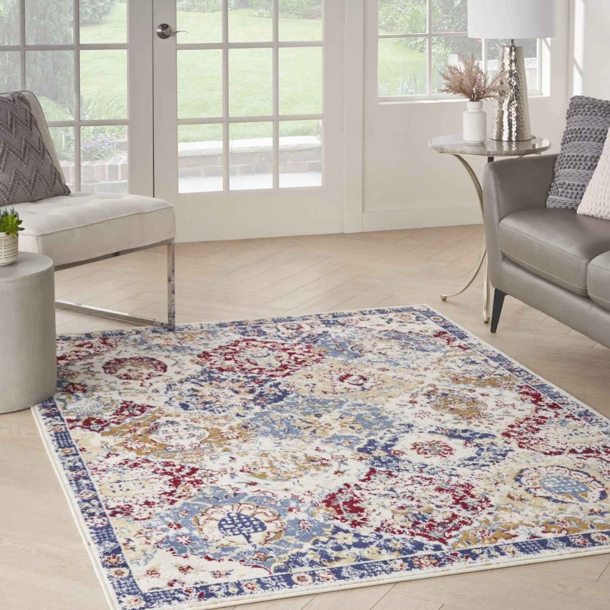 Set an inviting tone in your space with this 5' x 7' navy blue damask power loom distressed area rug. This rectangle shaped rug features a damask design in navy blue to give it visual interest. A classic shape marries with good looking design for your space Made in Turkey, this rug offers high quality combined with good looking designer sensibilities. Area Rugs help to give warmth and sense of home to your space. .50" H x 63.00" W x 87.00" D