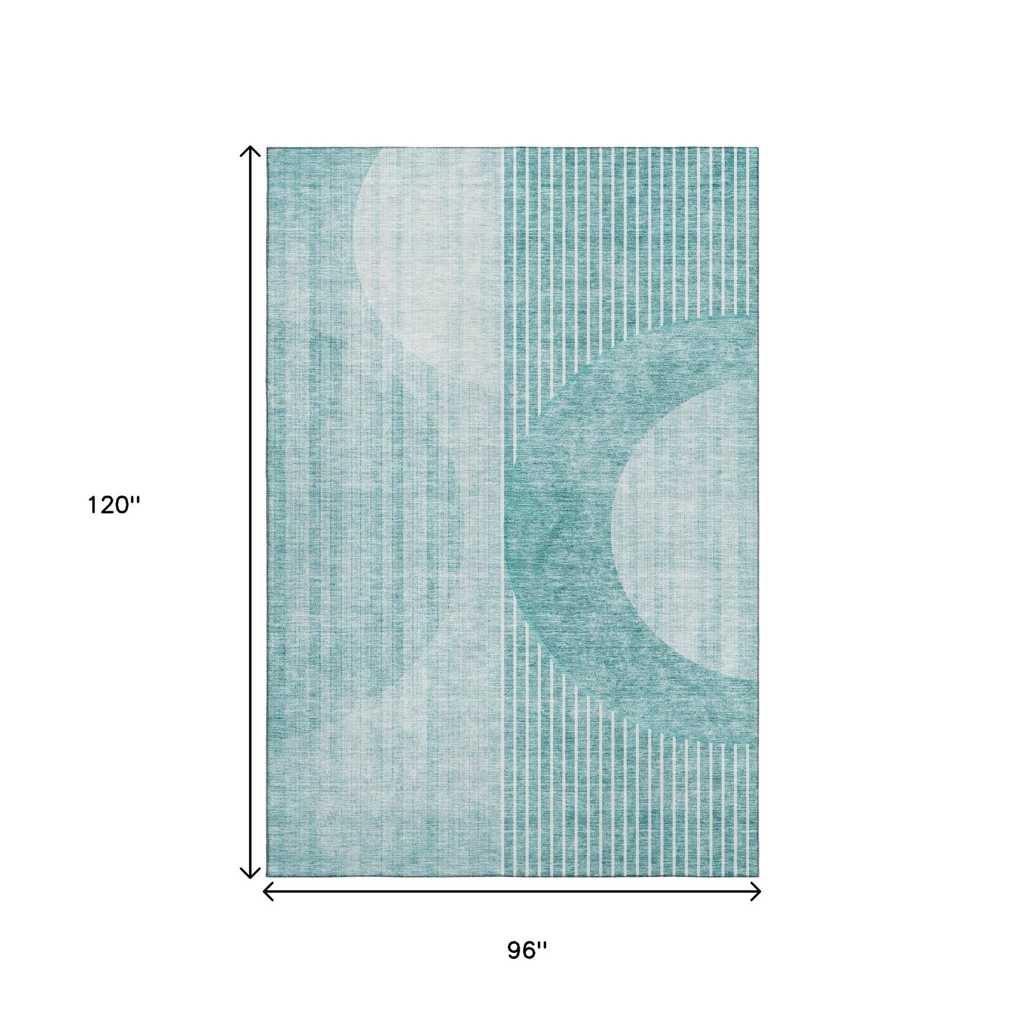 8' X 10' Teal And Ivory Geometric Washable Area Rug With UV Protection
