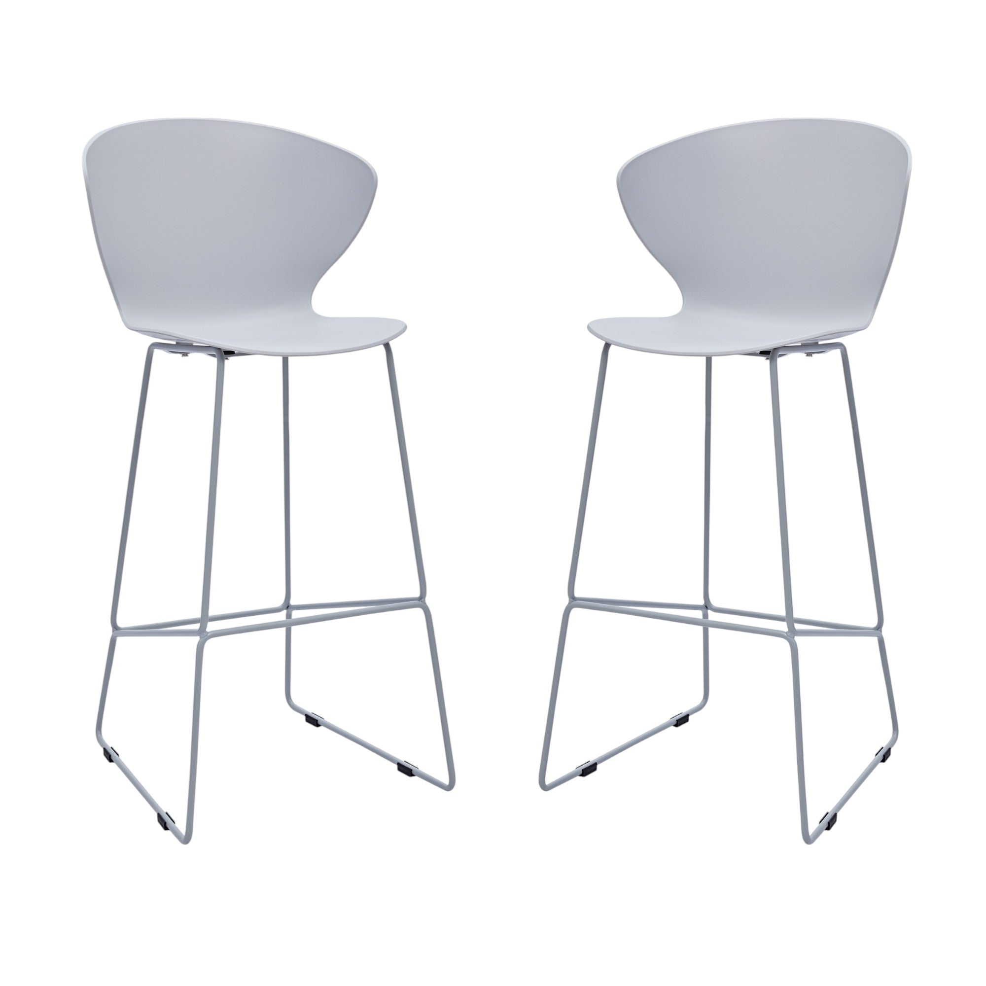 Set of Two 30" Gray Heavy Duty Plastic and Metal Low Back Bar Height Bar Chairs