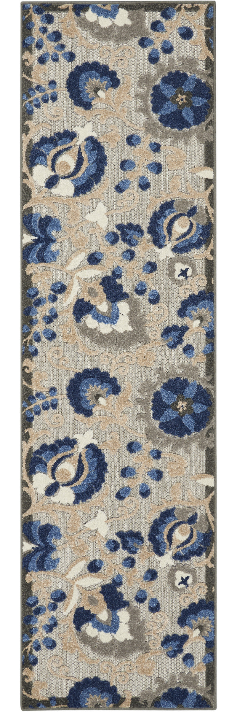 Add great coloration and comfortable texture to your space with this 10-foot blue and gray indoor outdoor area rug. Versatile in use, durable, and easy to maintain, this rug is an ideal solution to add a decorative and inviting touch to your indoor or outdoor space. Crafted with a machine-made construction, this rug features a power loom technique for enhanced durability. Its rectangle shape ensures a perfect fit for various settings, adding elegance to your decor. 27-inch h x 120-inch w x 1-inch d.