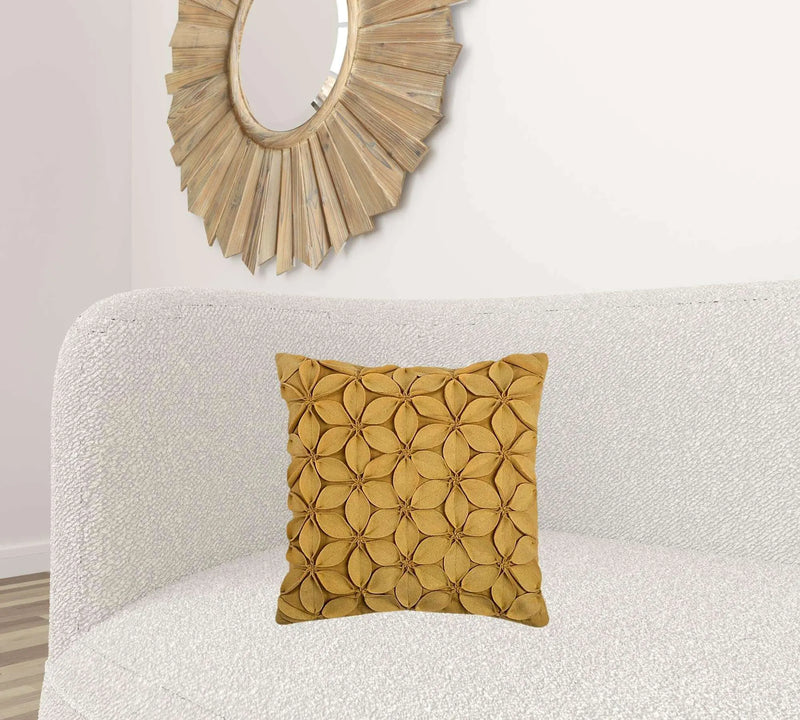 Yellow Pinwheel Floral Petal Down Throw Pillow