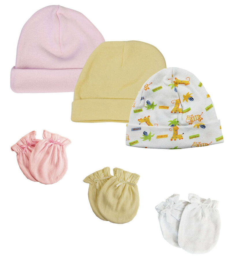 Keep your little one toasty warm caps with scratch-free no scratch mittens bundle.
