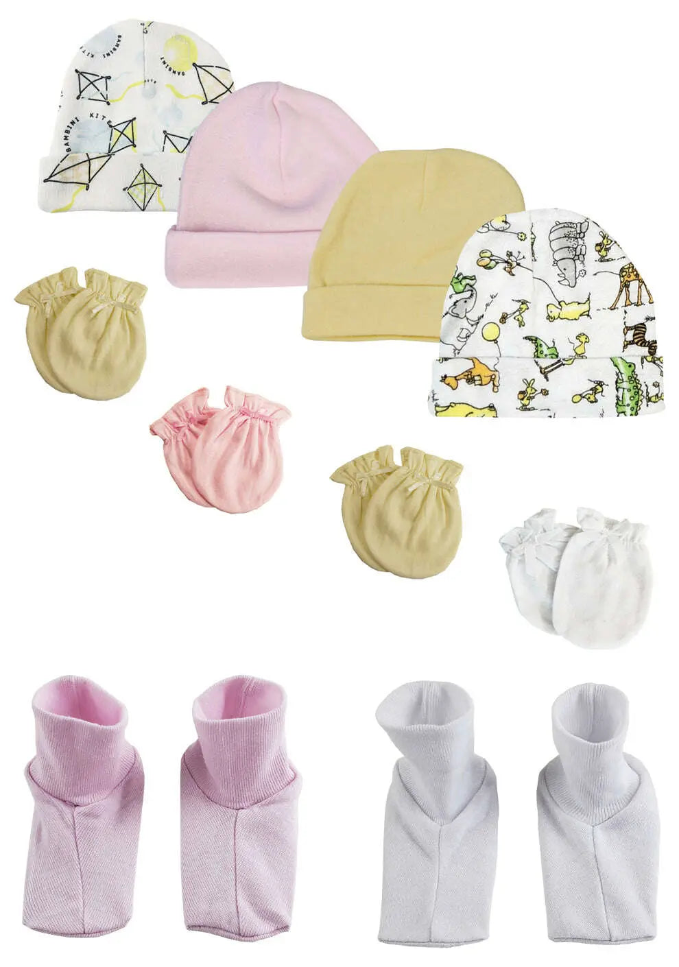 Boys Girls Caps, Booties And Mittens (pack Of 10) Nc_0297