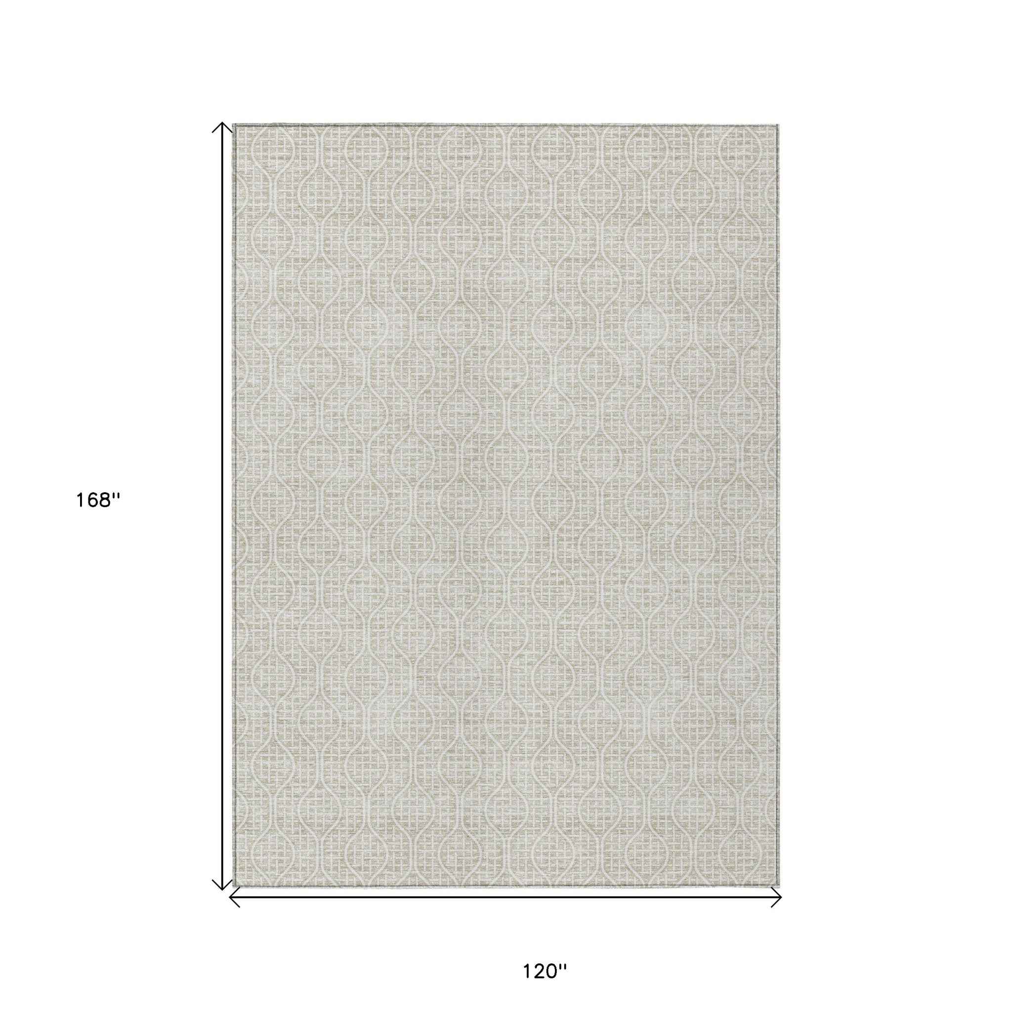 10' X 14' Beige And Ivory Geometric Washable Indoor Outdoor Area Rug