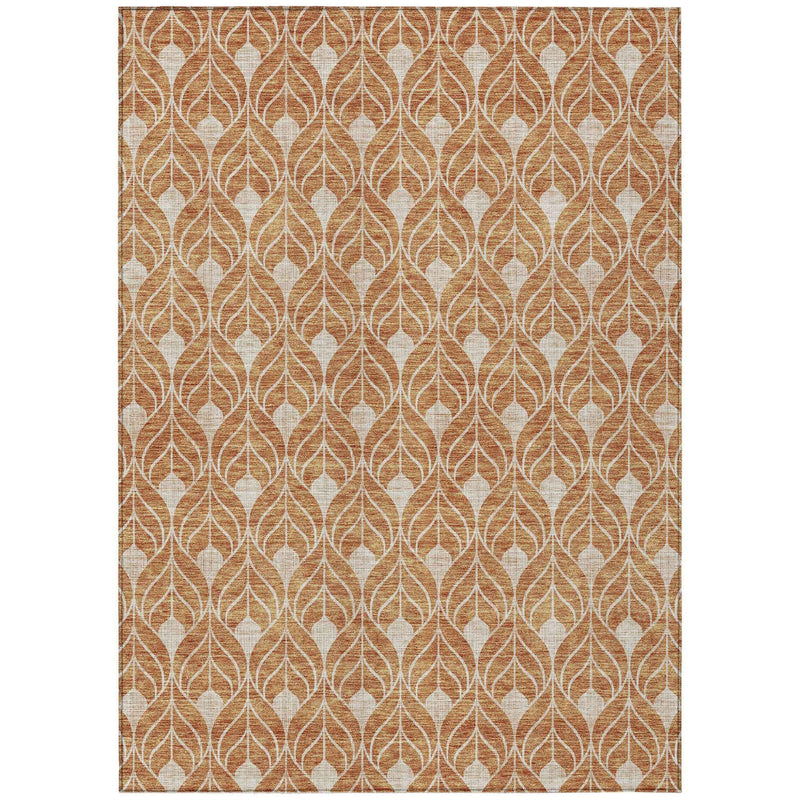 10' X 14' Copper And Beige Geometric Washable Indoor Outdoor Area Rug