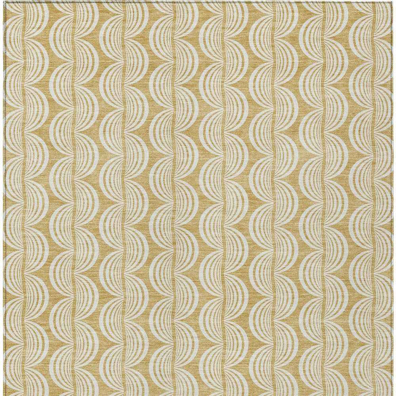 Set an inviting tone in your space with this 10-foot x 14-foot gold and beige ogee washable indoor outdoor area rug. This rectangle shaped rug features a ogee design that will work well both indoors or out. A classic shape marries with good looking design for your living room, hall, bedroom, porch, patio, or poolside. Ideal for outdoor spaces or high traffic areas with kids and pets, this rug is made from heavy duty polyester that is stain resistant to help repel water, dirt, and stains. Versatile in use, durable, and easy to maintain, this rug is an ideal solution to add a decorative and inviting touch to your indoor or outdoor space. 120-inch h x 168-inch w x 0.19-inch d.