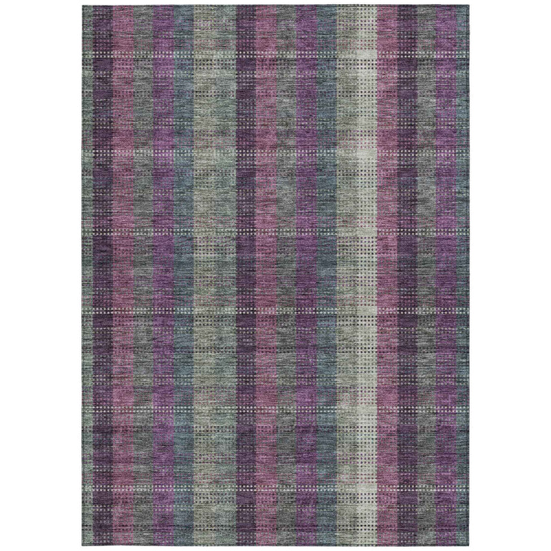10' X 14' Plum Eggplant And Gray Plaid Washable Indoor Outdoor Area Rug