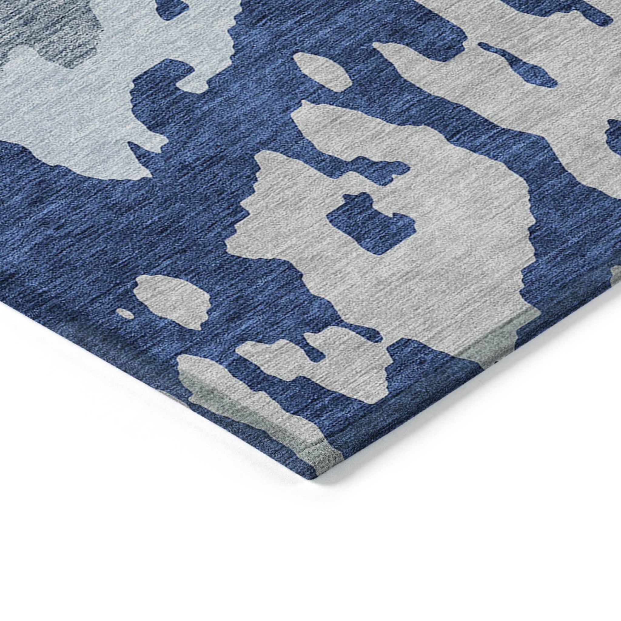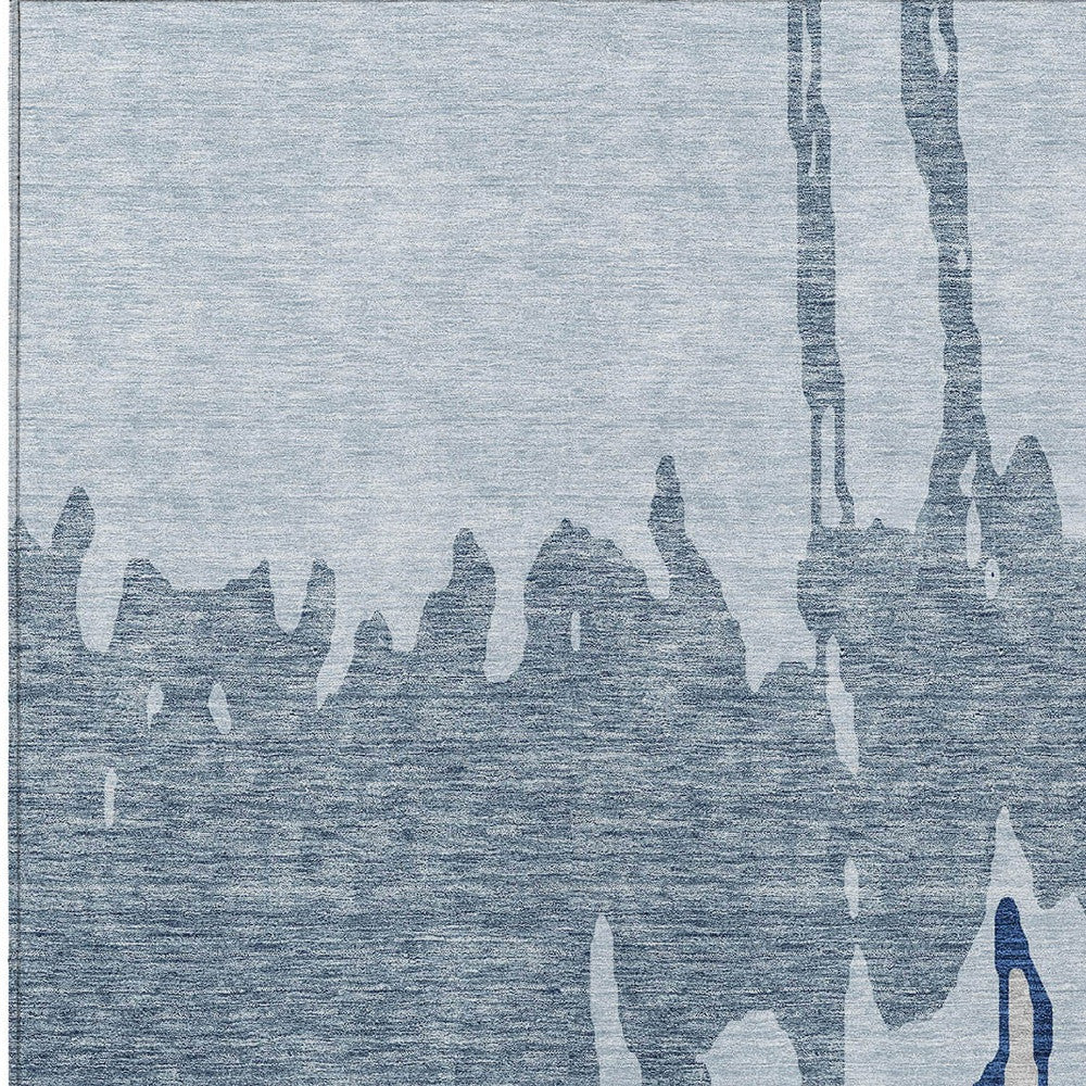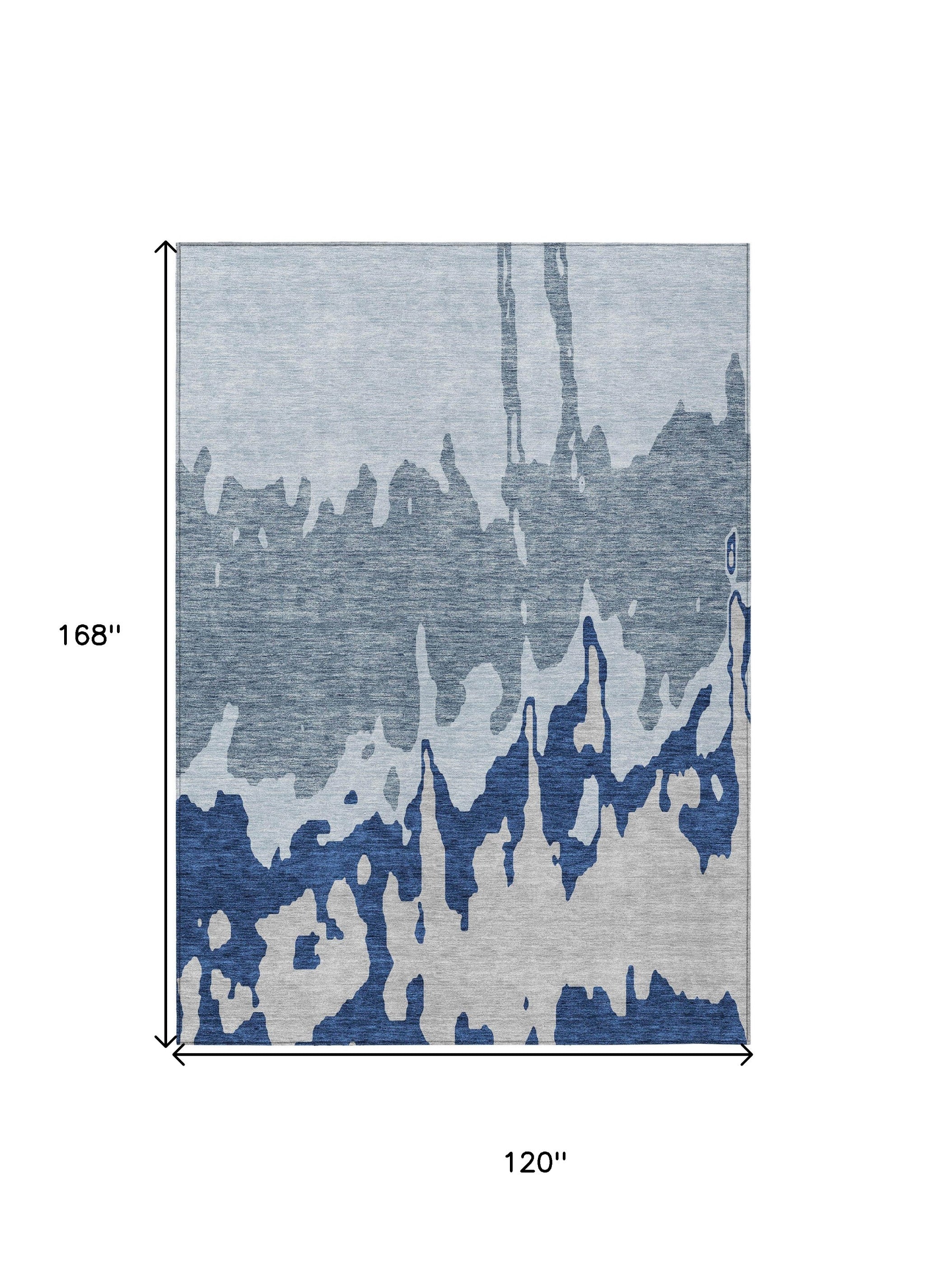 10' X 14' Sky Blue And Denim Blue Abstract Washable Indoor Outdoor Area Rug