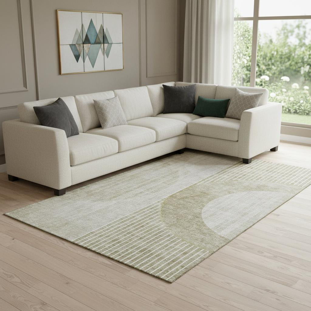 Set an inviting tone in your space with this 10-foot x 14-foot taupe and beige geometric washable area rug with uv protection. Ideal for spaces with kids and pets, this rug is stain resistant to help repel dirt and spilled liquids. Built to last, this rug crafted from polyester fibers is known for its durability and long lasting appeal. Rugs are a great way to showcase your style, hide imperfections, warm your home and reduce noise. This larger sized, transitional styled rug is ready to create a focal point or statement piece in your room. 120.00-inch h x 168.00-inch w x 0.39-inch d.