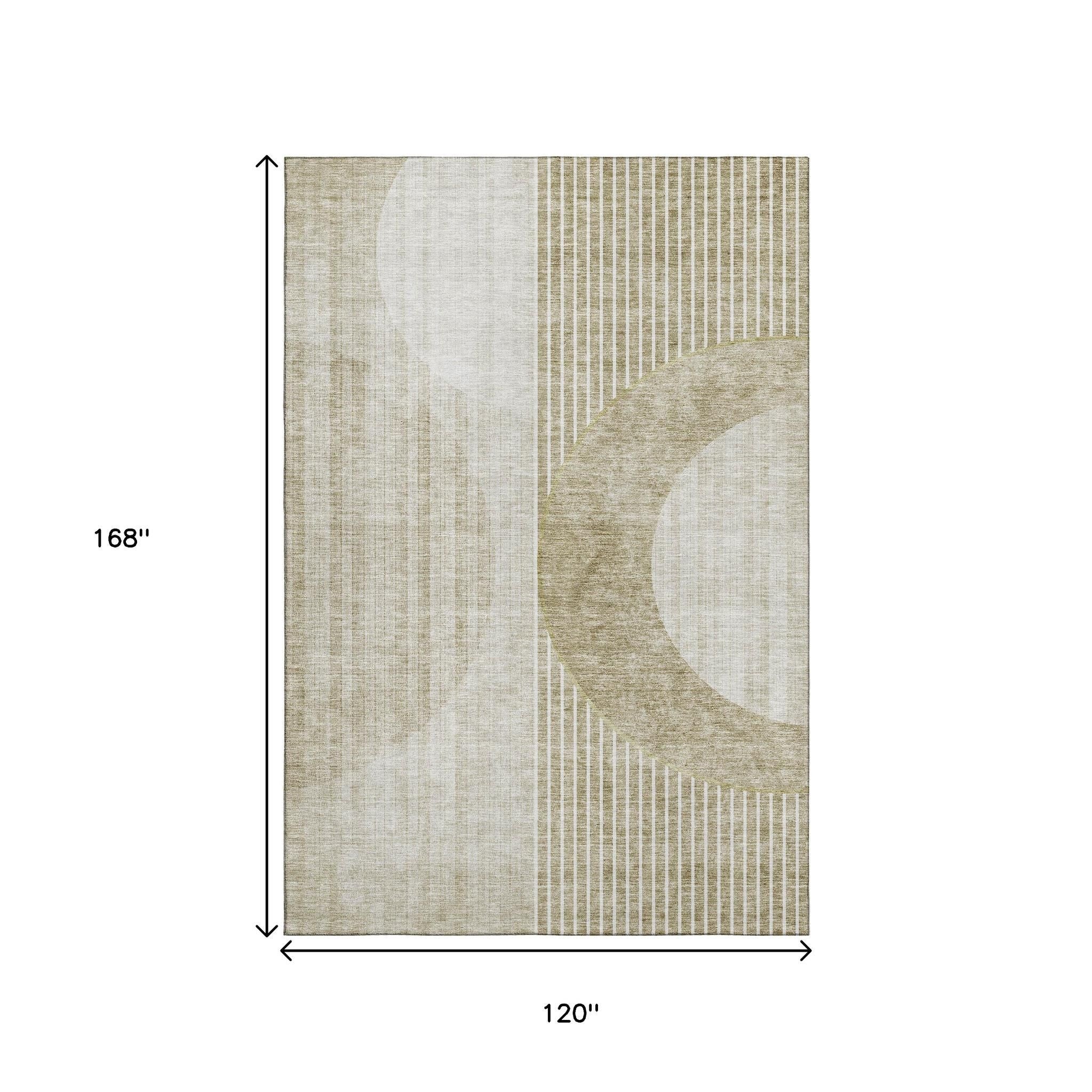 10' X 14' Taupe And Beige Geometric Washable Area Rug With UV Protection