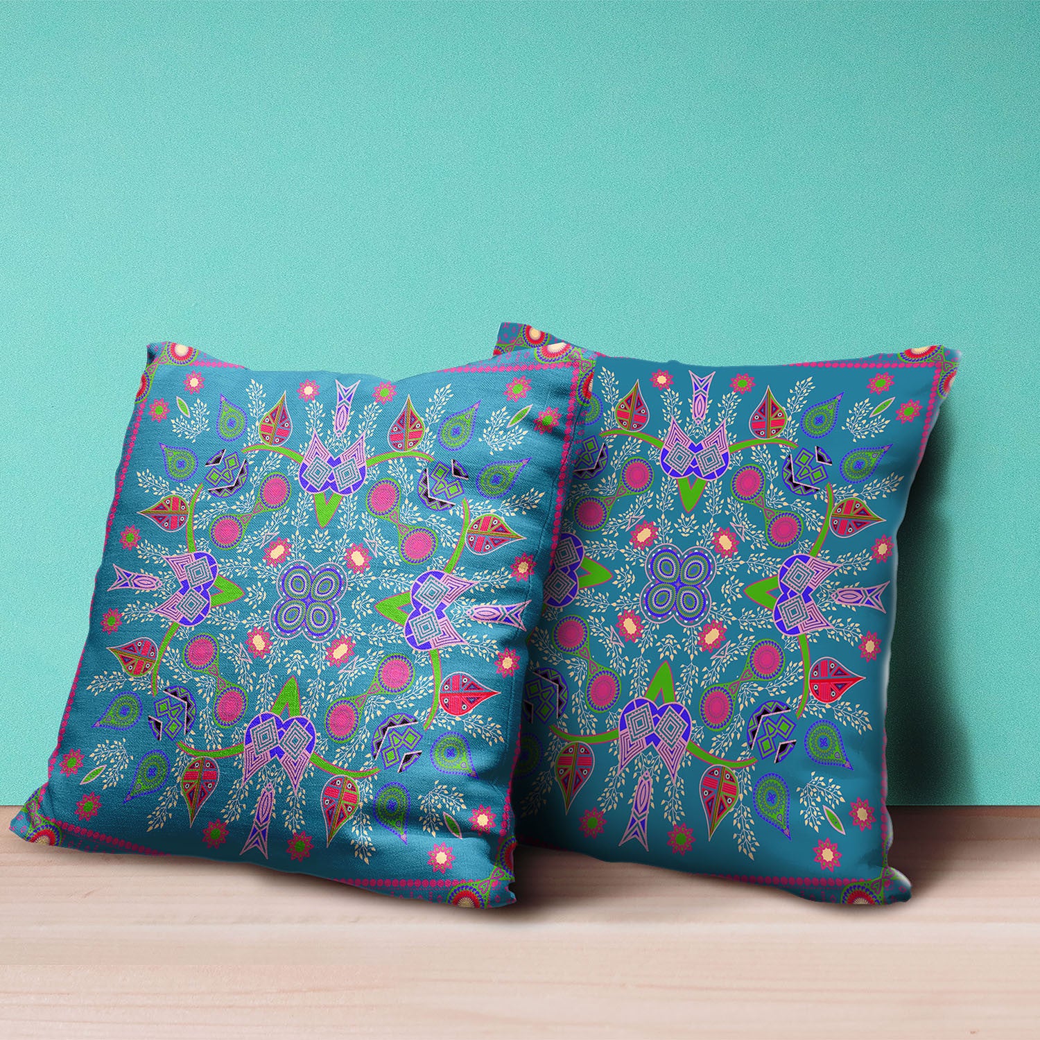 Bring a bit of fashion and zip to your space with this eye-catching and comfy 16" x 16" blue and green blown seam floral indoor outdoor throw pillow. Durable blue and green broadcloth has been used to give this pillow a beautiful look that will stand the test of time. A great decorative accessory to decorate indoors or out. Decorative pillows are a great way to change up the look and feel of your space easily and quickly. 5" H x 16" W x 16" D