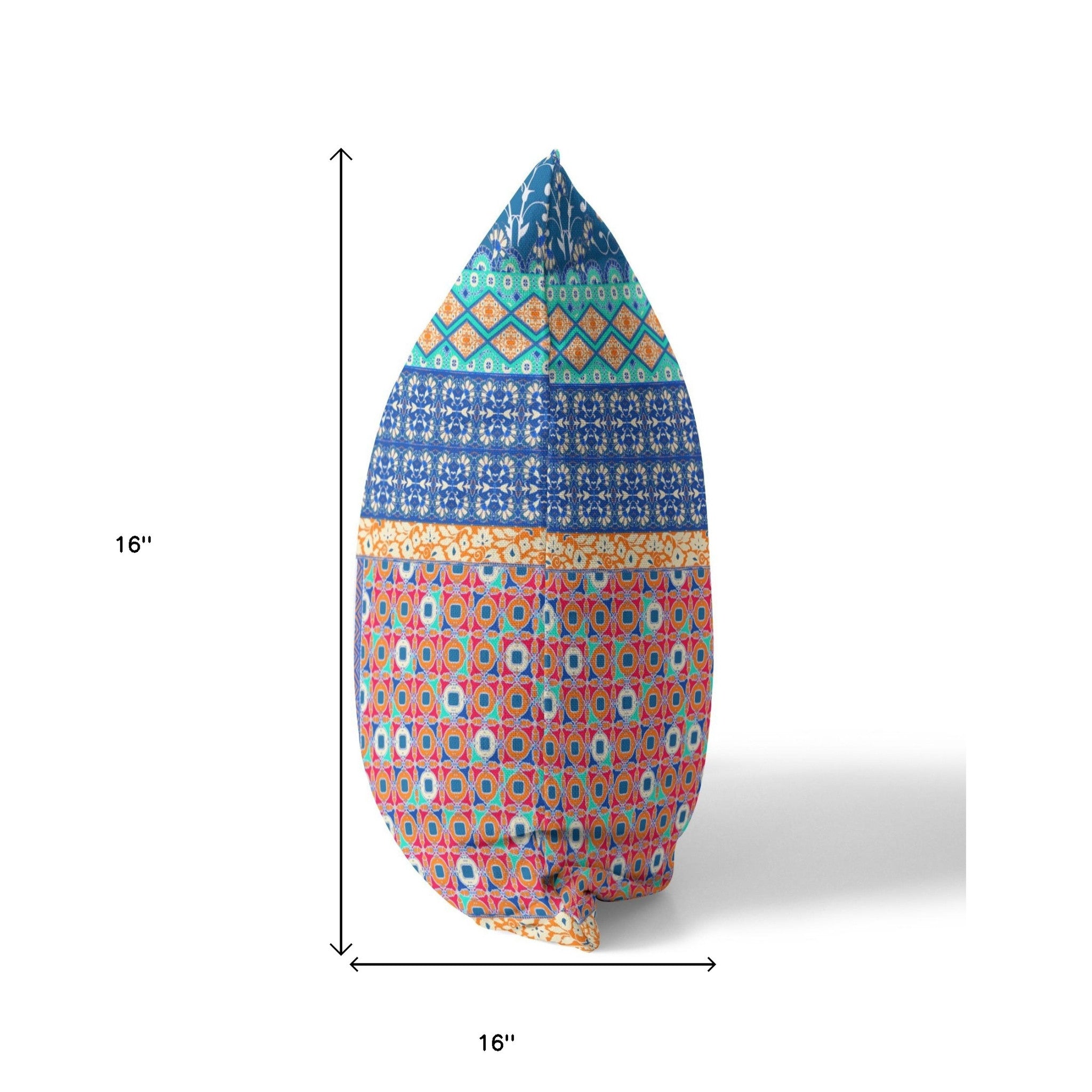 16"X16" Blue And Orange Microsuede Patchwork Blown Seam Pillow