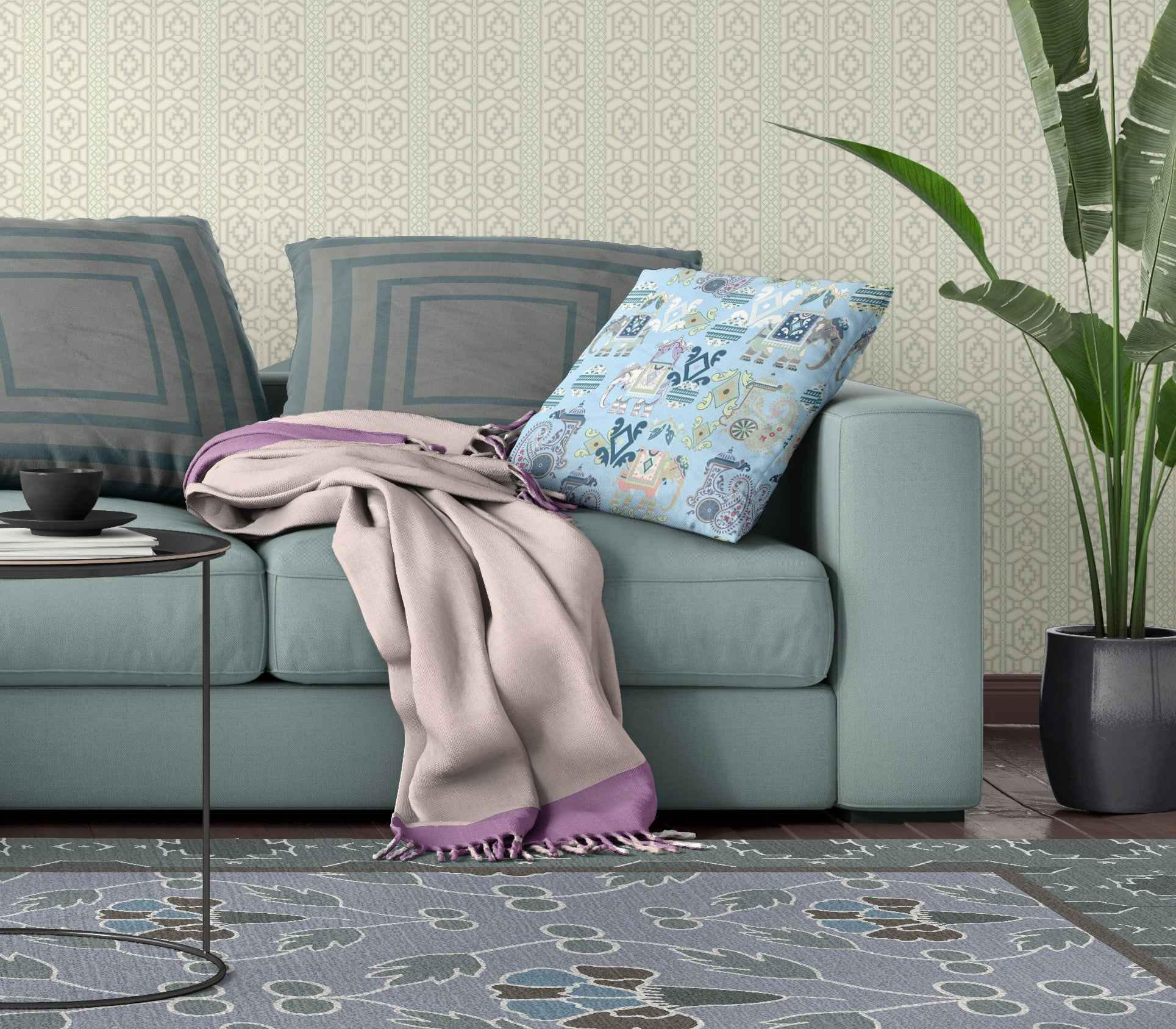 Bring a bit of fashion and zip to your space with this eye-catching and comfy 18" x 18" sky blue and white paisley blown seam suede throw pillow. Decorative throw pillows not only add color and dimension to your space but can be comfy and supportive when you are lounging and cuddling as well. A great decorative accessory for your favorite chair, to accent your sofa, or to use as part of your bed ensemble. 5" H x 18" W x 18" D