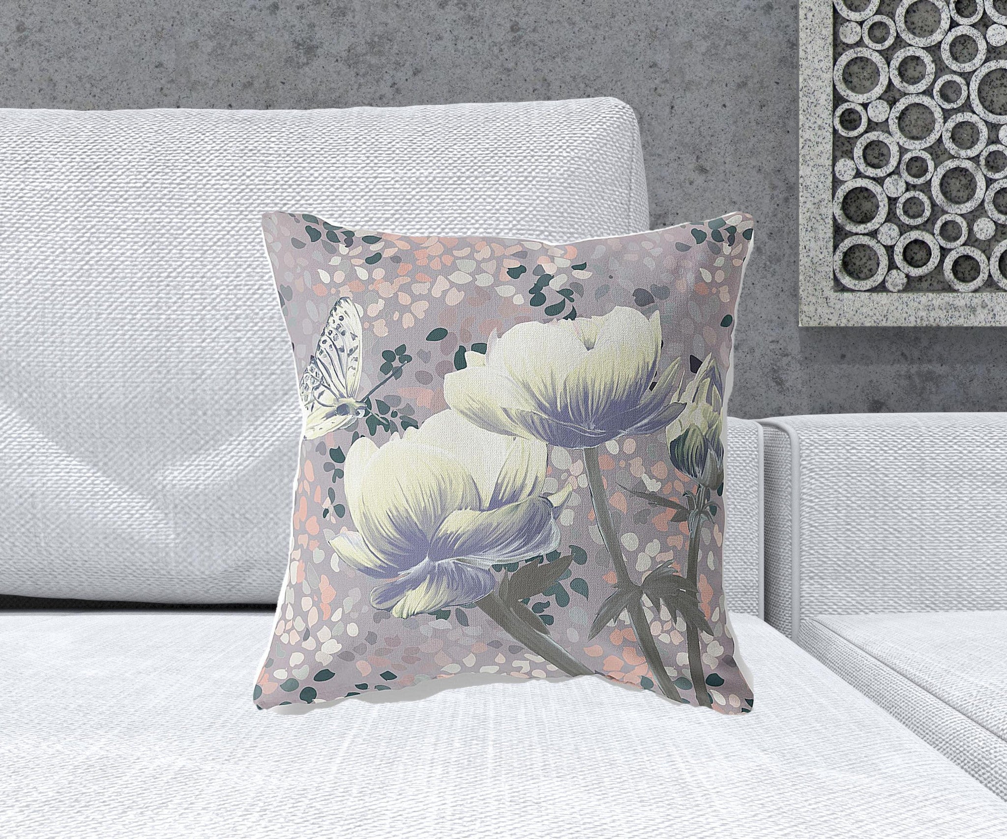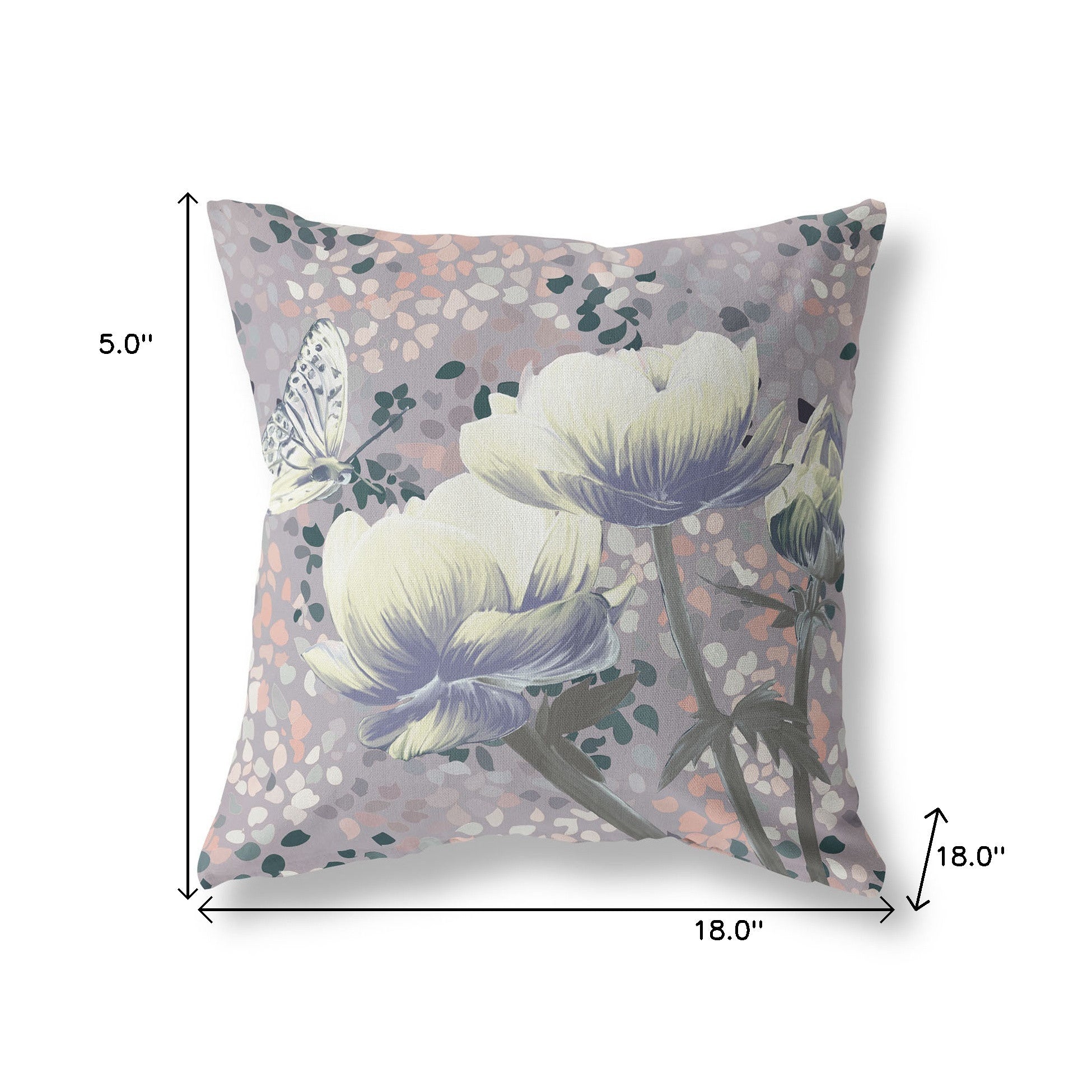18" x 18" Yellow Butterfly Blown Seam Floral Indoor Outdoor Throw Pillow
