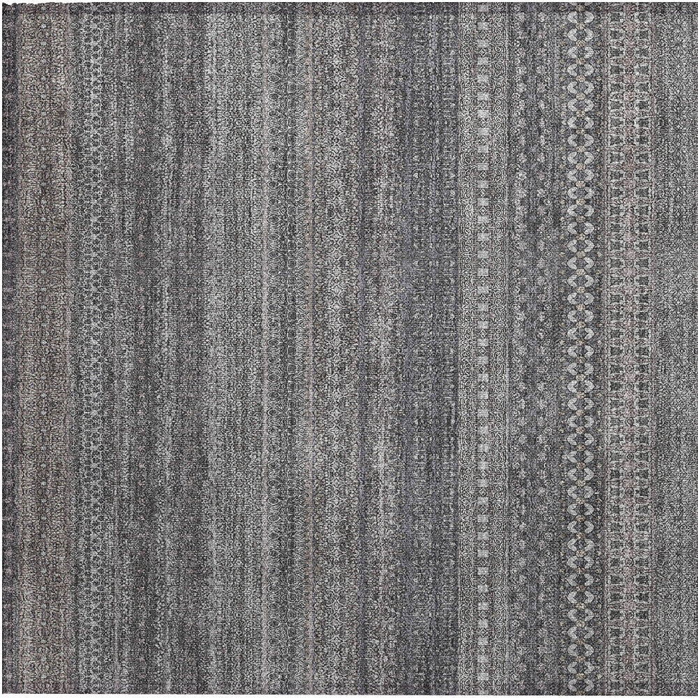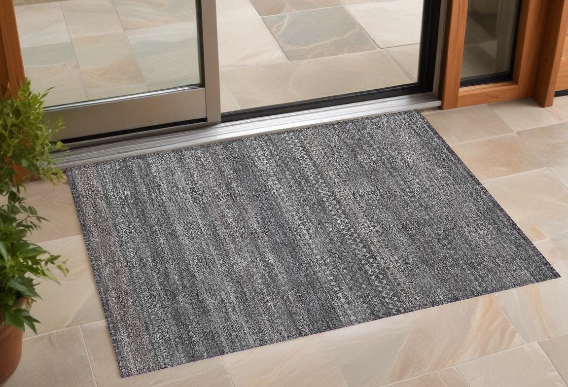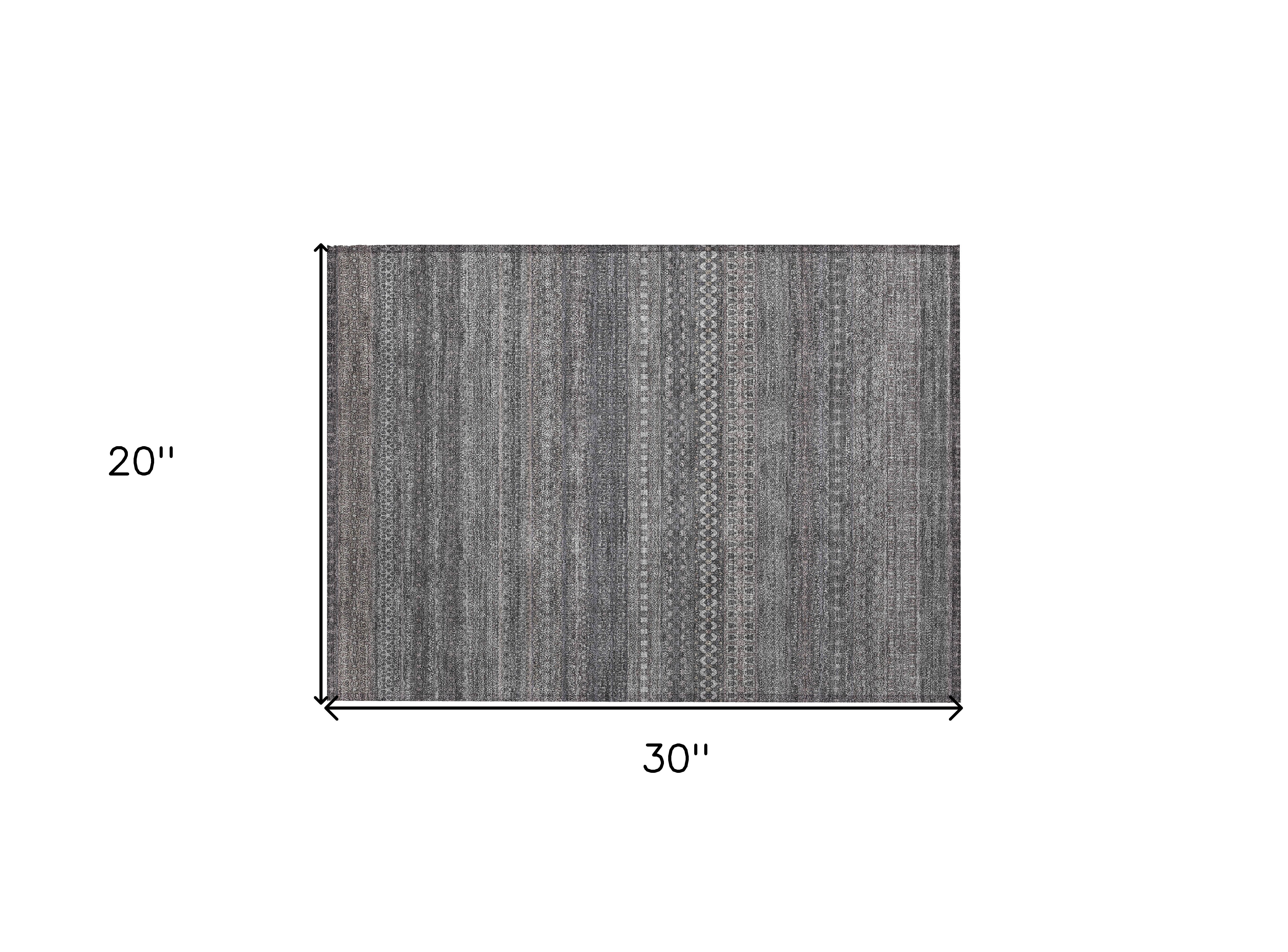 2' X 3' Gray Striped Washable Non Skid Indoor Outdoor Area Rug
