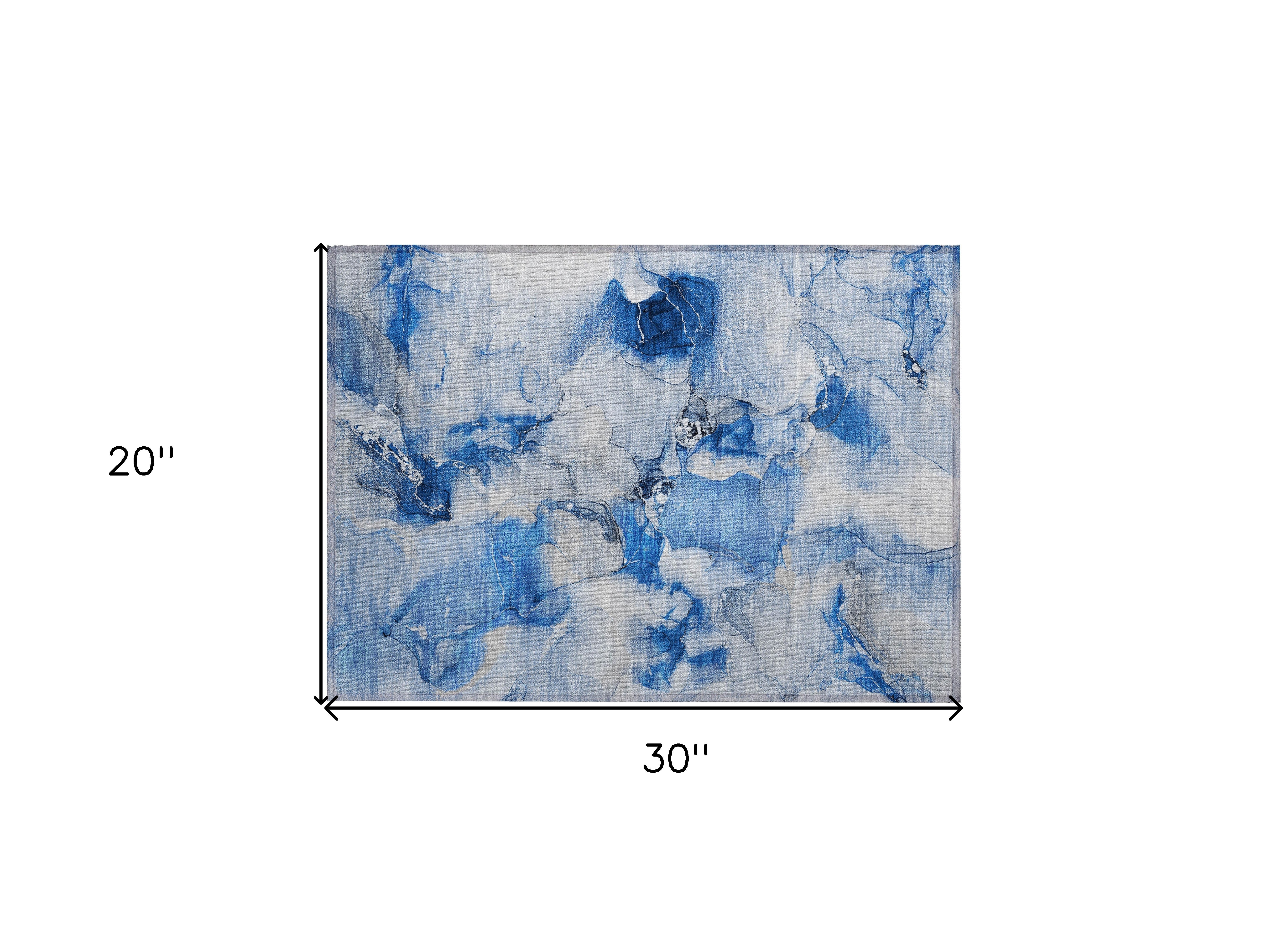 2' X 3' Navy Blue Abstract Washable Indoor Outdoor Area Rug