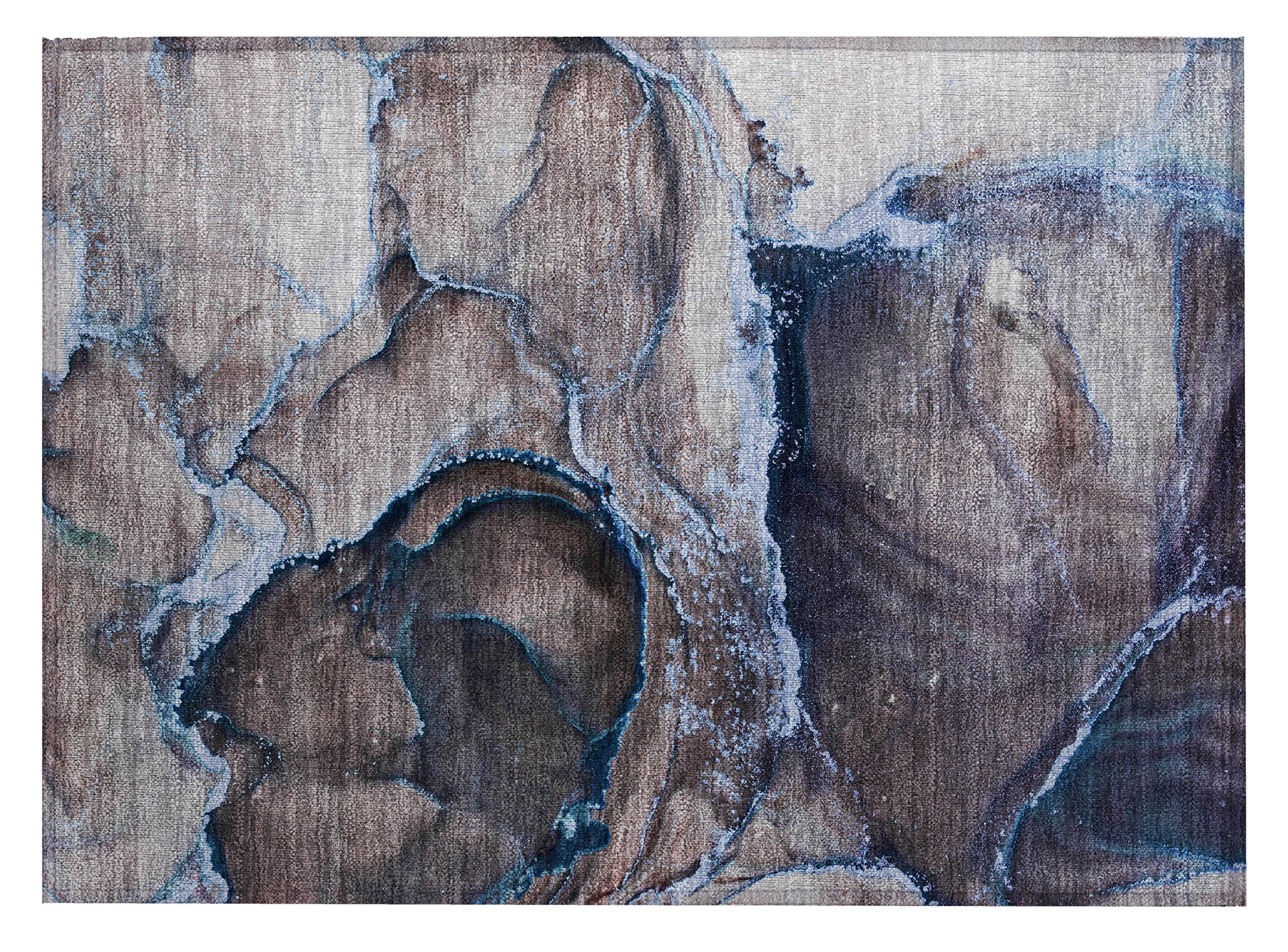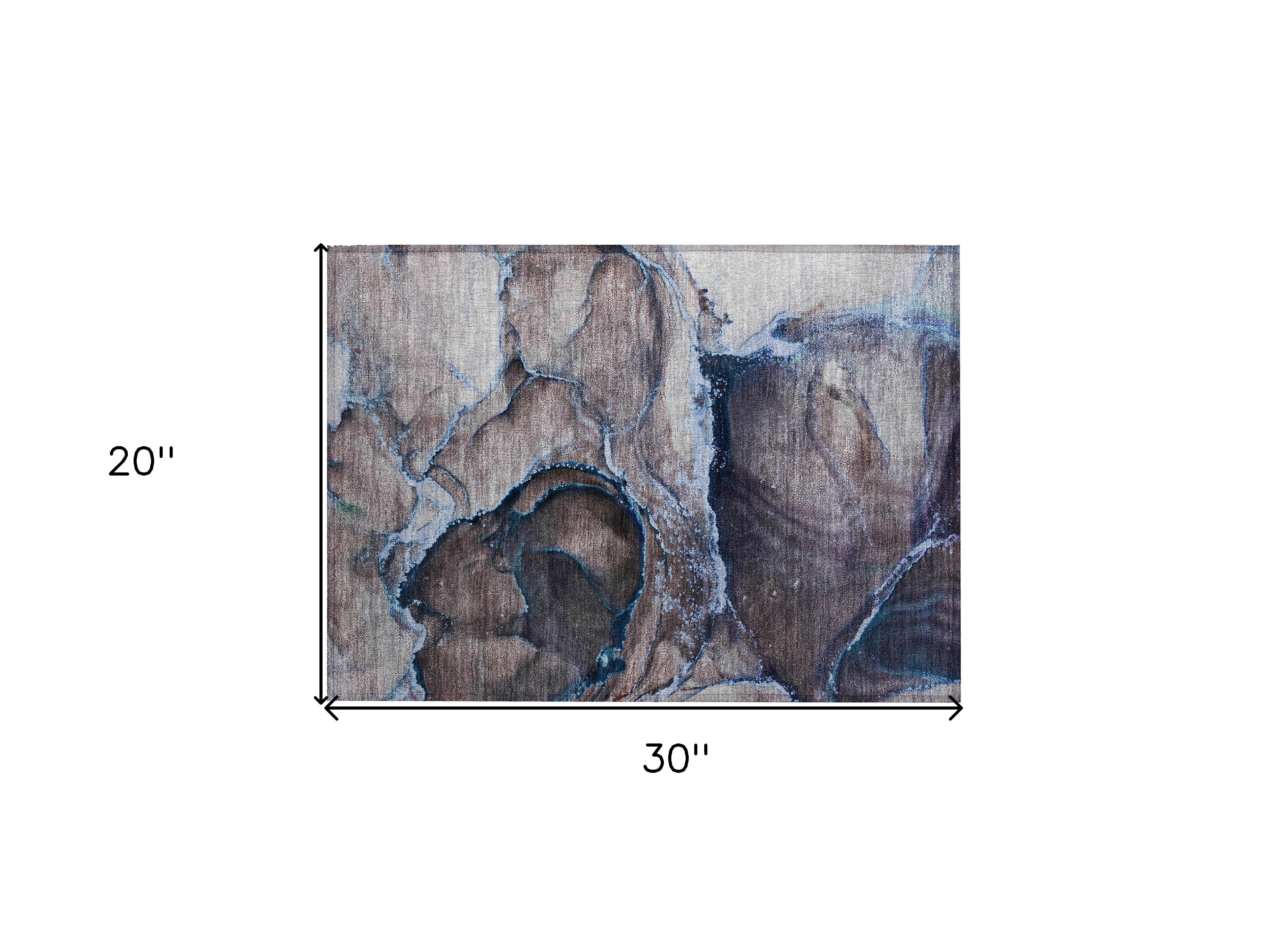 2' X 3' Navy Blue Abstract Washable Non Skid Indoor Outdoor Area Rug