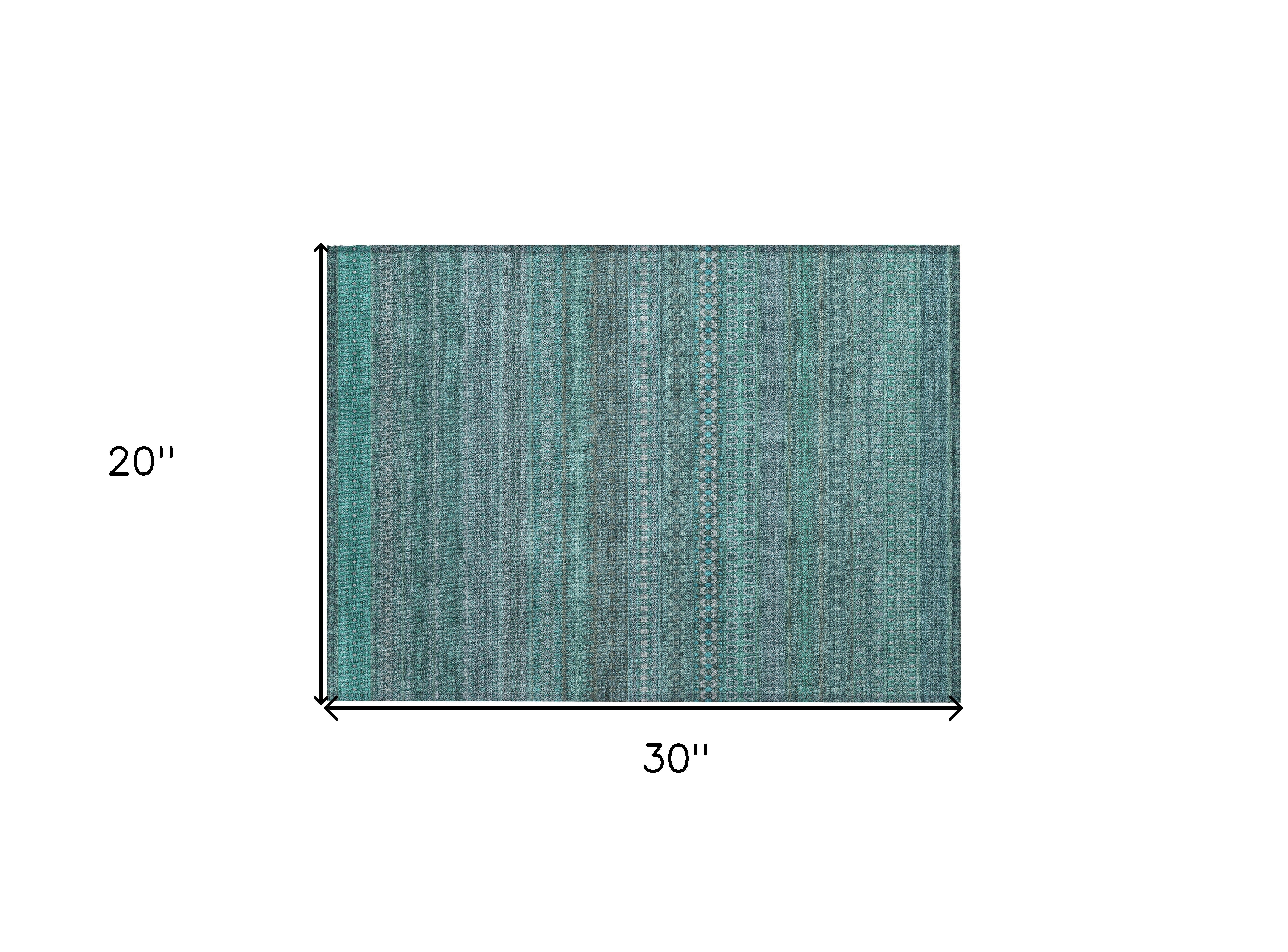 2' X 3' Turquoise Striped Washable Non Skid Indoor Outdoor Area Rug