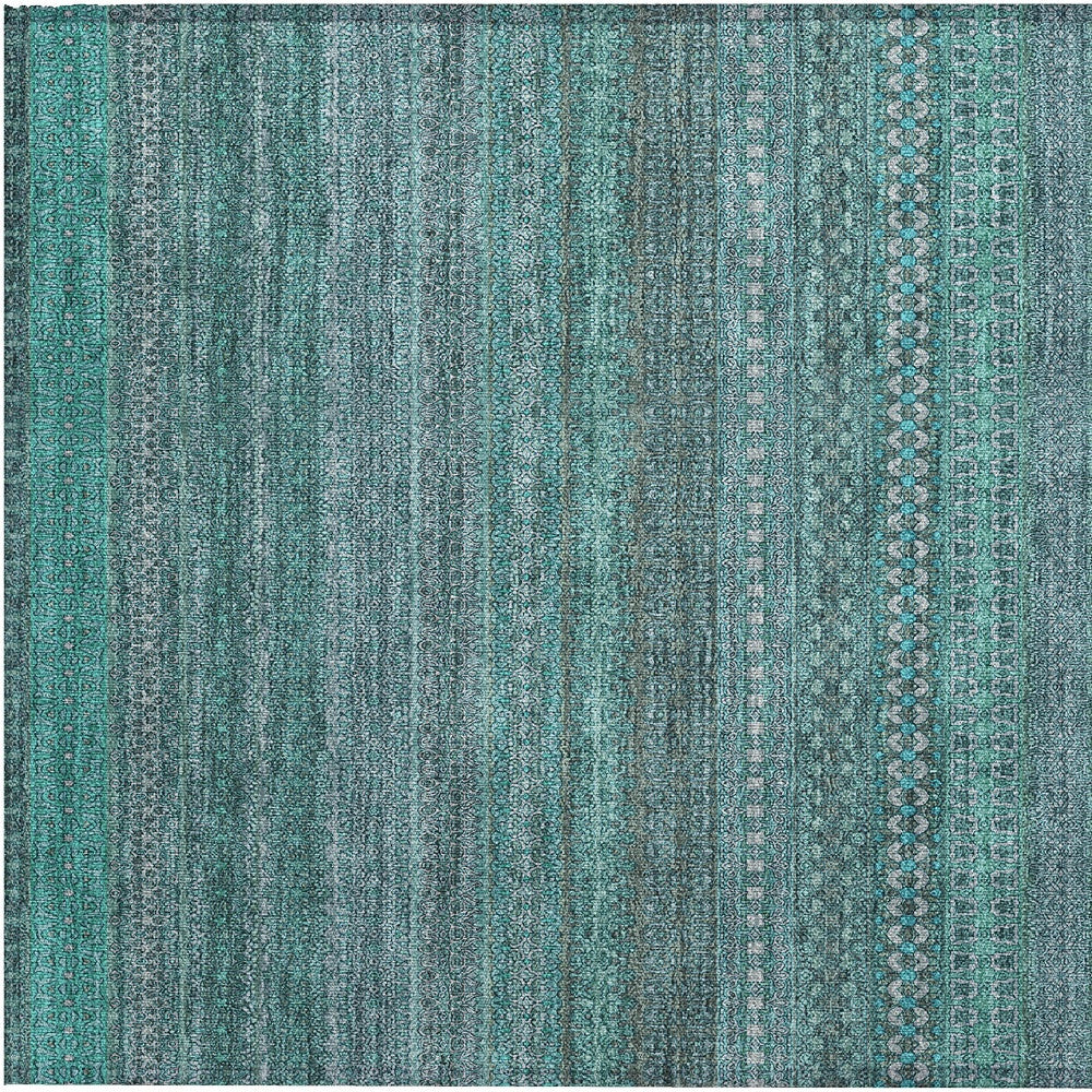 Add some artistry to your room with this 2-foot x 3-foot turquoise striped washable stain resistant non skid indoor outdoor area rug. This rectangle shaped rug features a striped design in turquoise to give it visual interest. A classic shape marries with good looking design for your space ideal for spaces with kids and pets, this rug is stain resistant to help repel stains and spilled liquids. Area rugs help to give warmth and sense of home to your space. 20-inch H x 30-inch W x 0.19-inch D