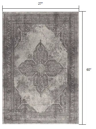 2’ X 5’ Gray Distressed Medallion Area Rug