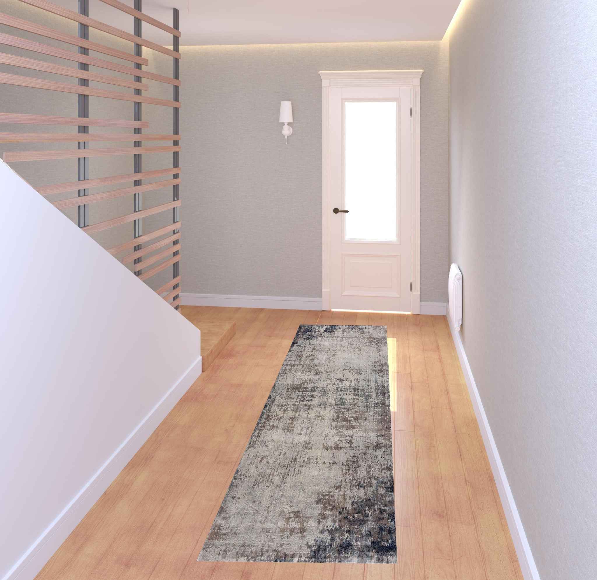 The visually intriguing abstract patterns in a subtle color palette make this Navy Blue Distressed Striations Runner Rug a perfect pick to add an artistic appeal to your living space. Giving off a weathered impression with its skillful use of navy blue and beige hues on an ivory base to accentuate the aesthetics of antique pieces. Made in Turkey with 100% inherently durable and stain-resistant polypropylene fibers to stand up the elements of high traffic indoor areas while ensuring its strength and sheen for years to come. The high and dense pile construction not only adds to its surface interest but also offers a soft and cozy layer under the feet to experience utmost comfort as you step on this piece. The neutral hues of this runner rug make it not only a cornerstone for contemporary styling but also a versatile accent to suit any interior theme. 96” x 27” x 0.4”