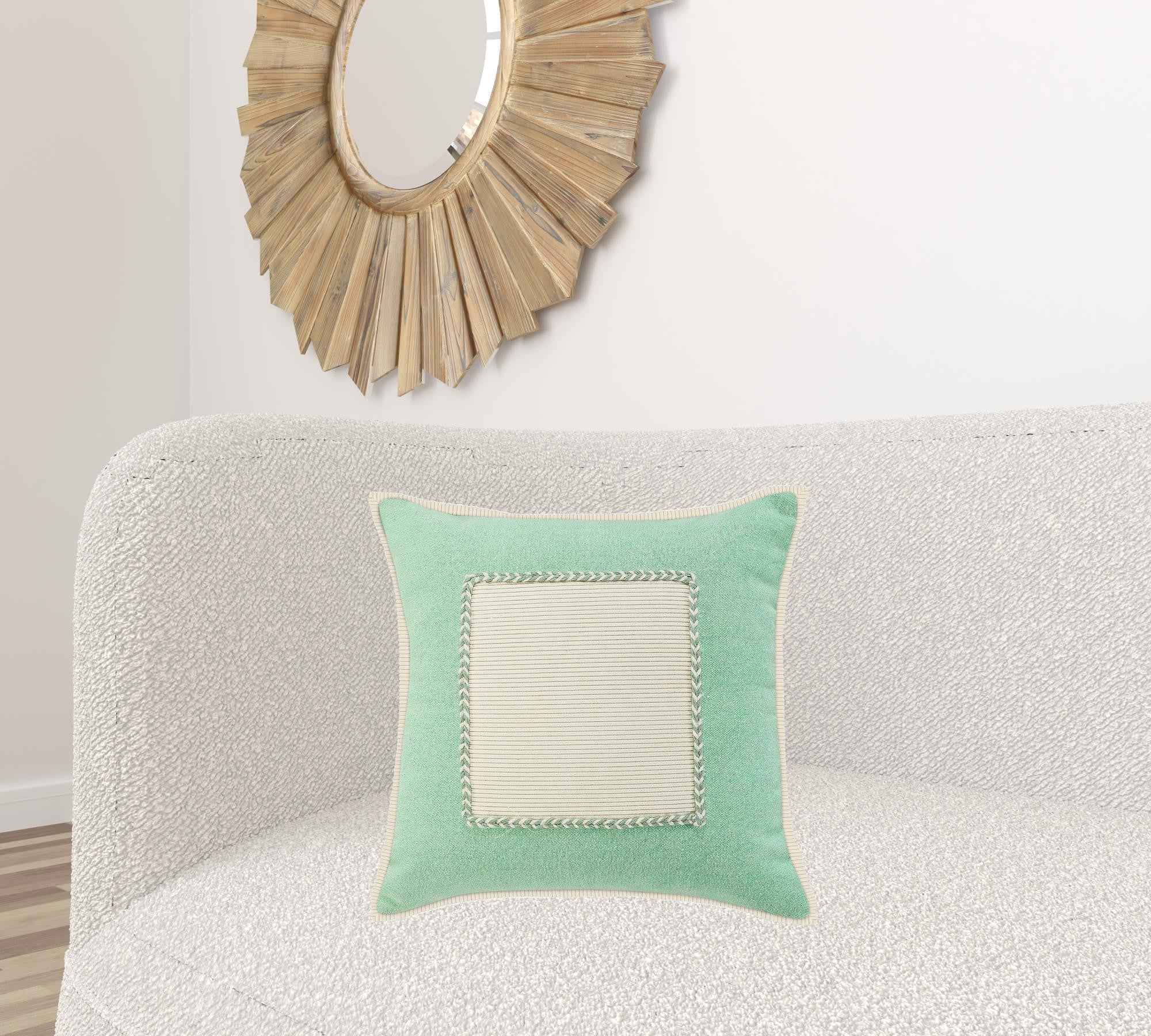 20" X 20" Pastel Green And Cream 100% Cotton Zippered Pillow
