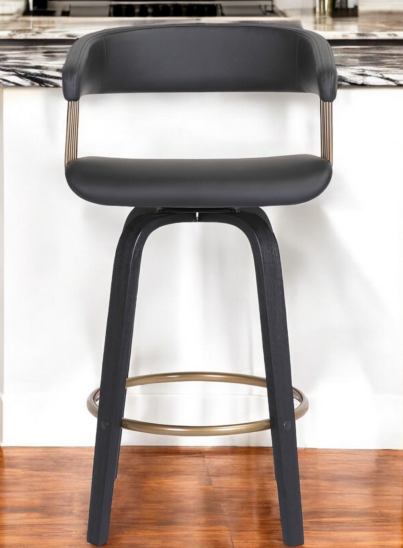 26" Black Faux Leather Swivel Counter Height Bar Chair