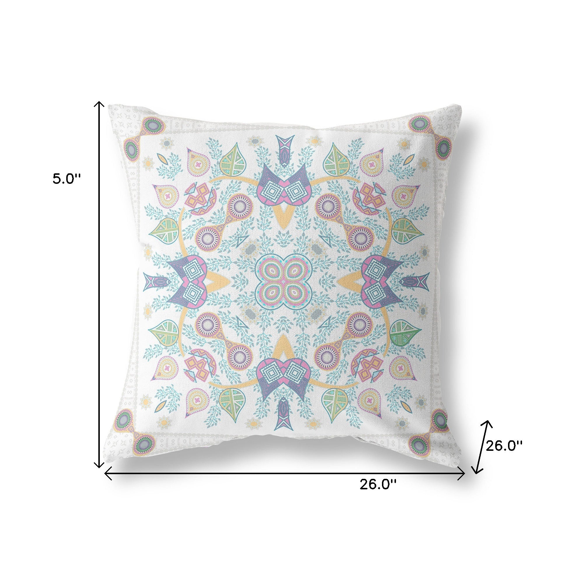 26" X 26" White And Green Blown Seam Floral Indoor Outdoor Throw Pillow
