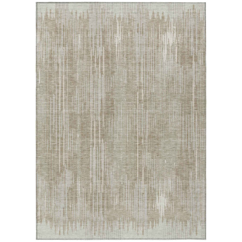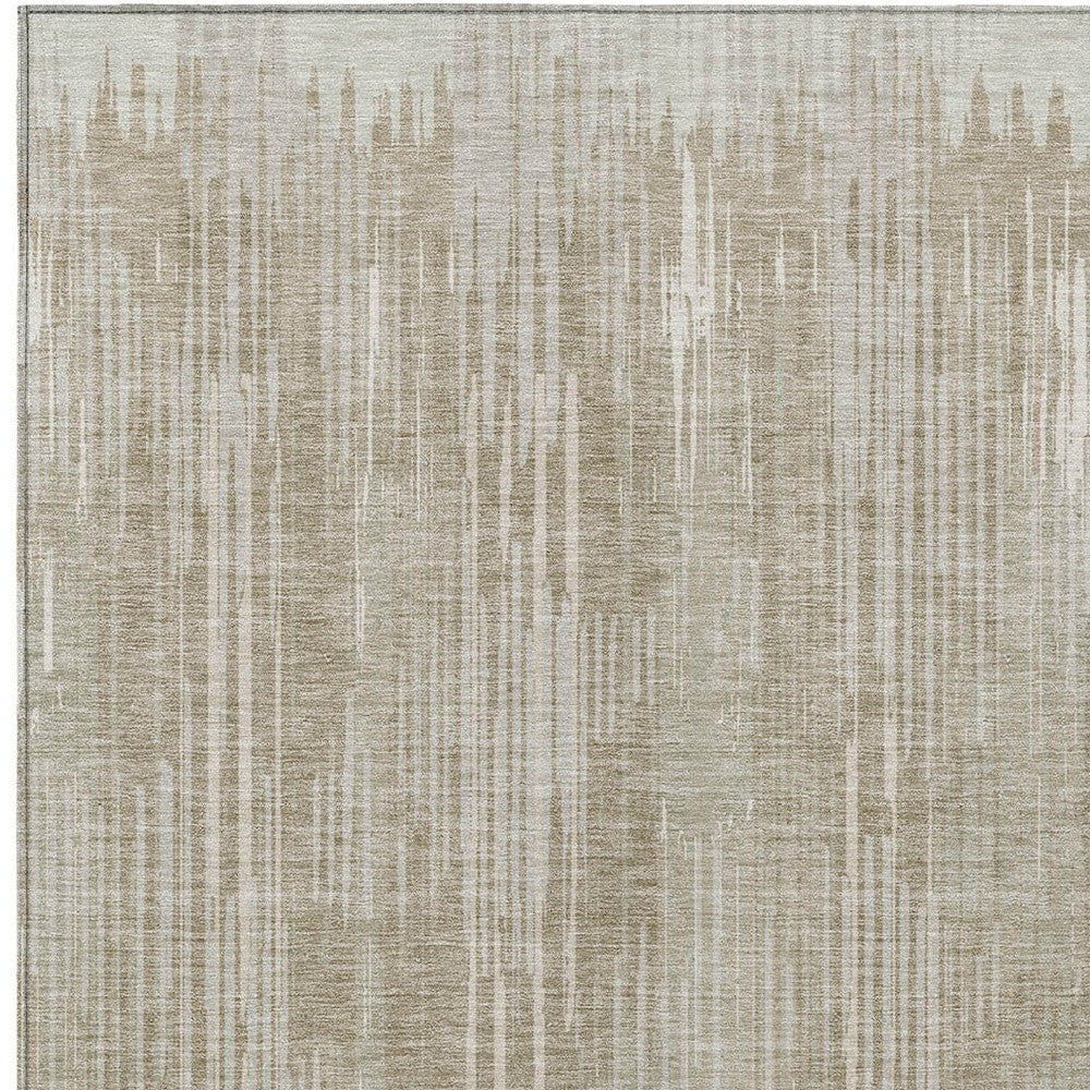 3' X 5' Beige And Ivory Striped Washable Indoor Outdoor Area Rug