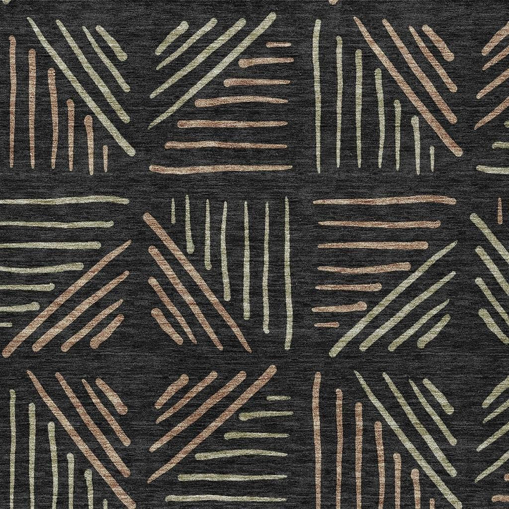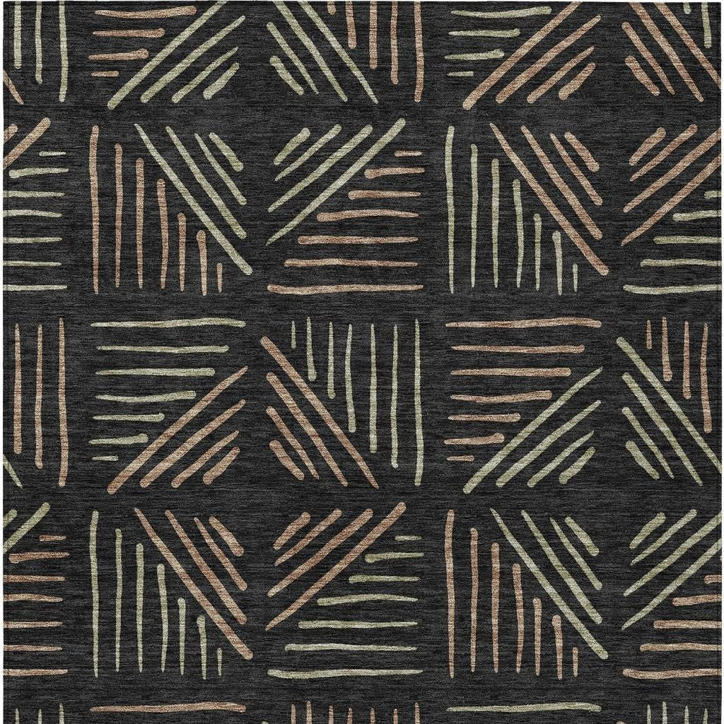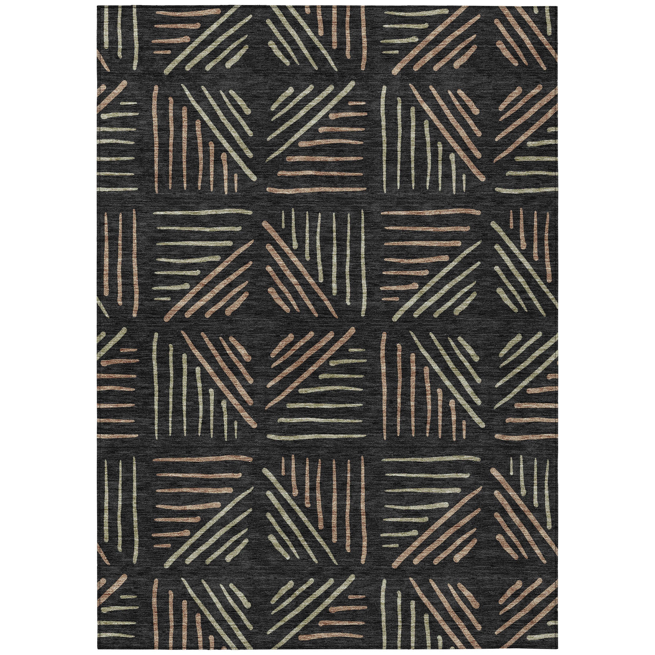 3' X 5' Black And Copper Geometric Washable Indoor Outdoor Area Rug