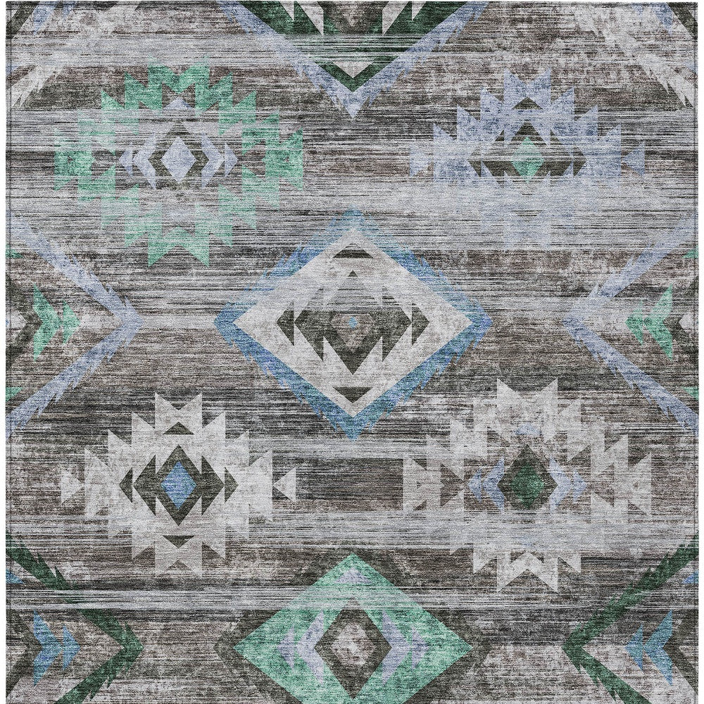 3' X 5' Brown Beige And Blue Southwestern Washable Indoor Outdoor Area Rug