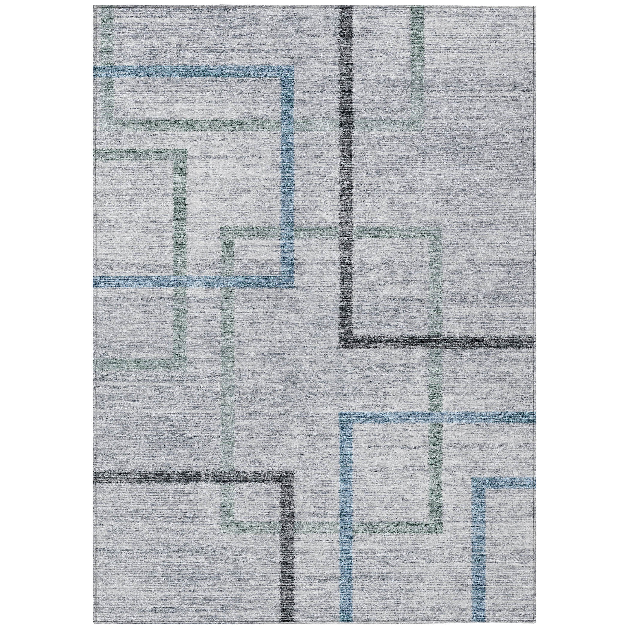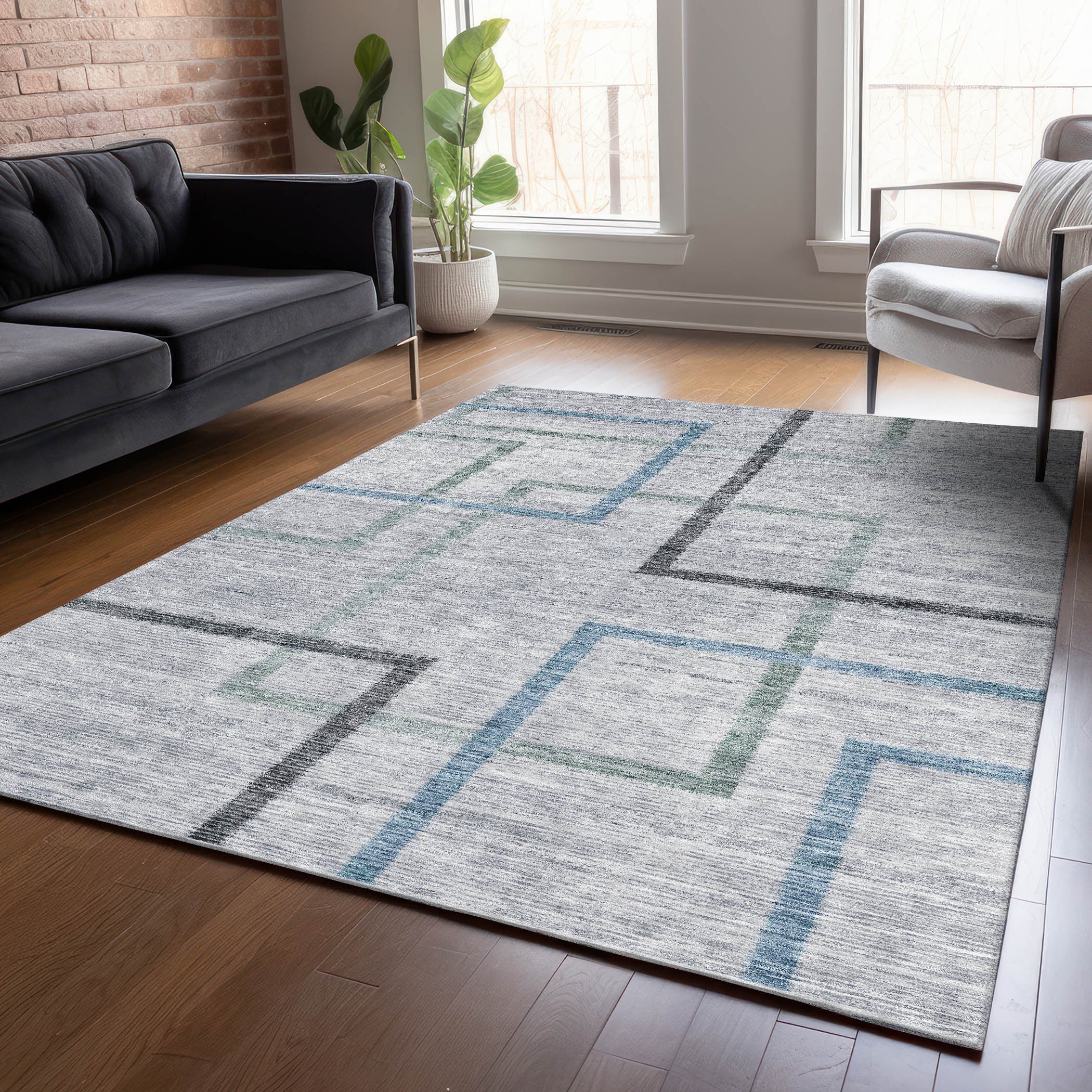 3' X 5' Gray Charcoal And Blue Geometric Washable Indoor Outdoor Area Rug