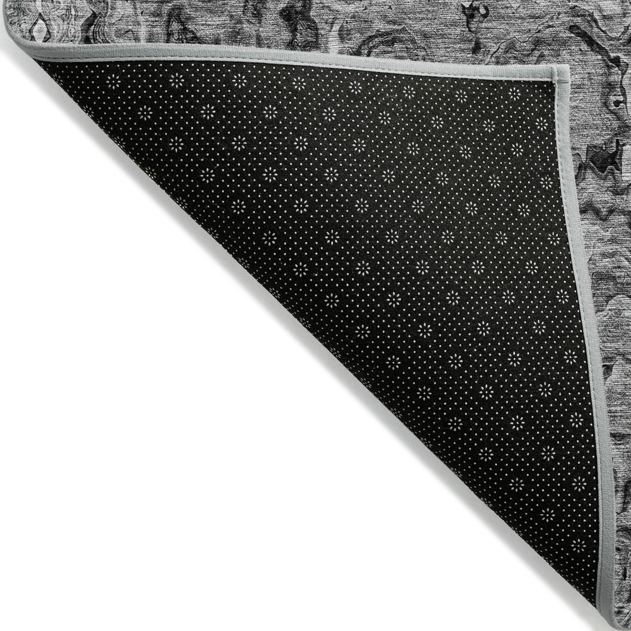 3' X 5' Gray Charcoal And Silver Abstract Washable Indoor Outdoor Area Rug