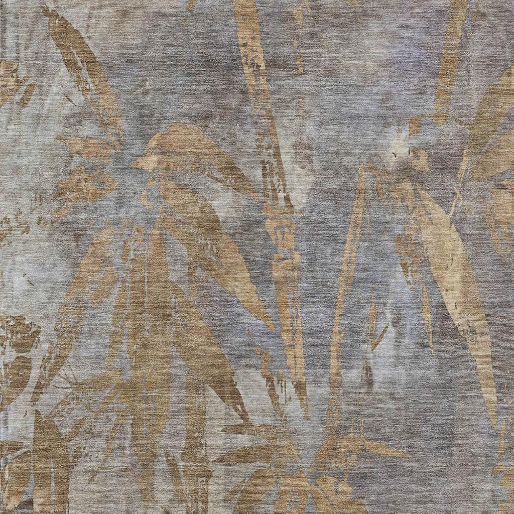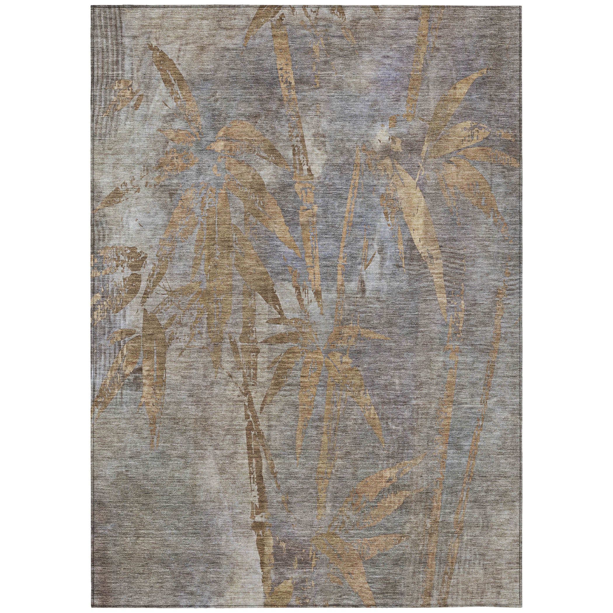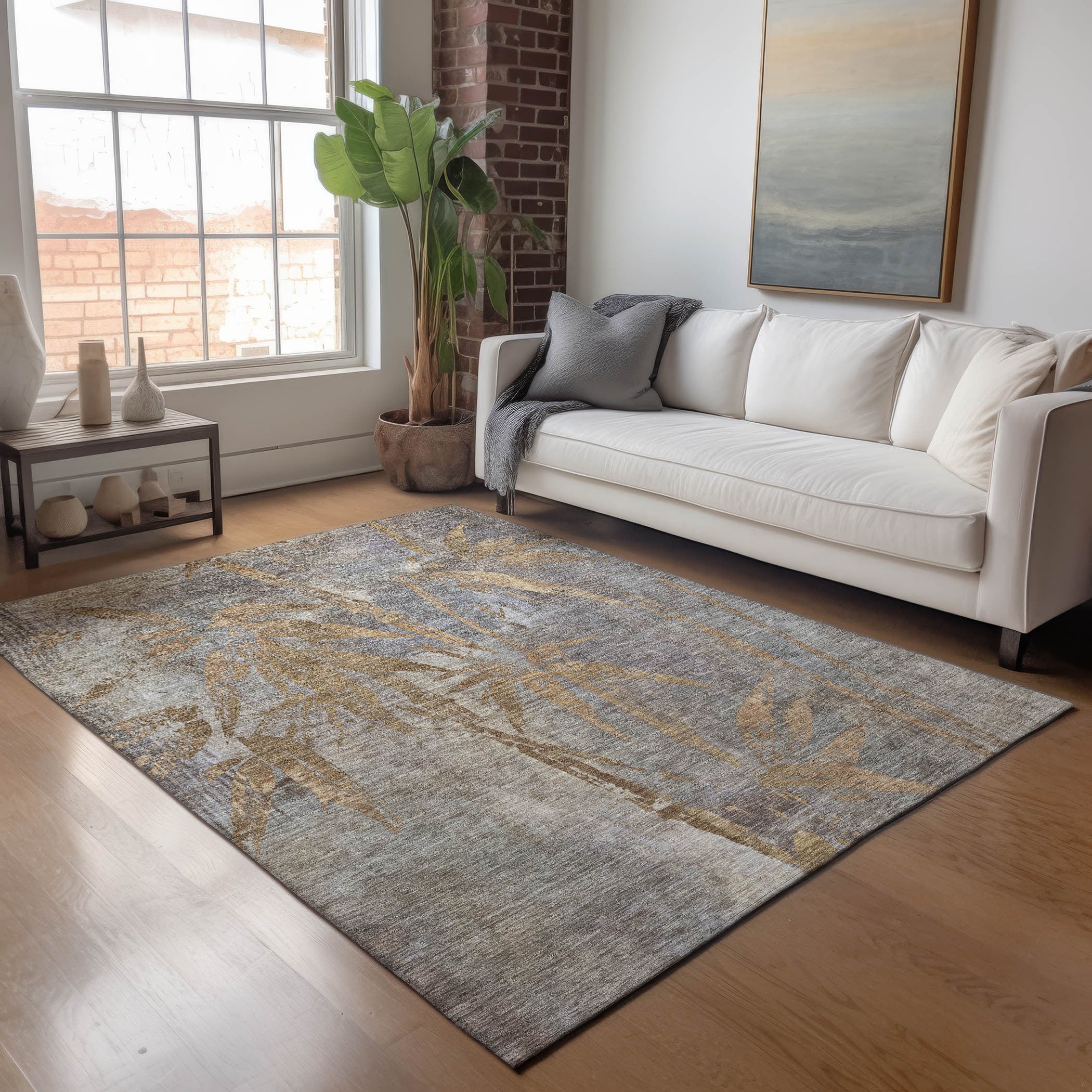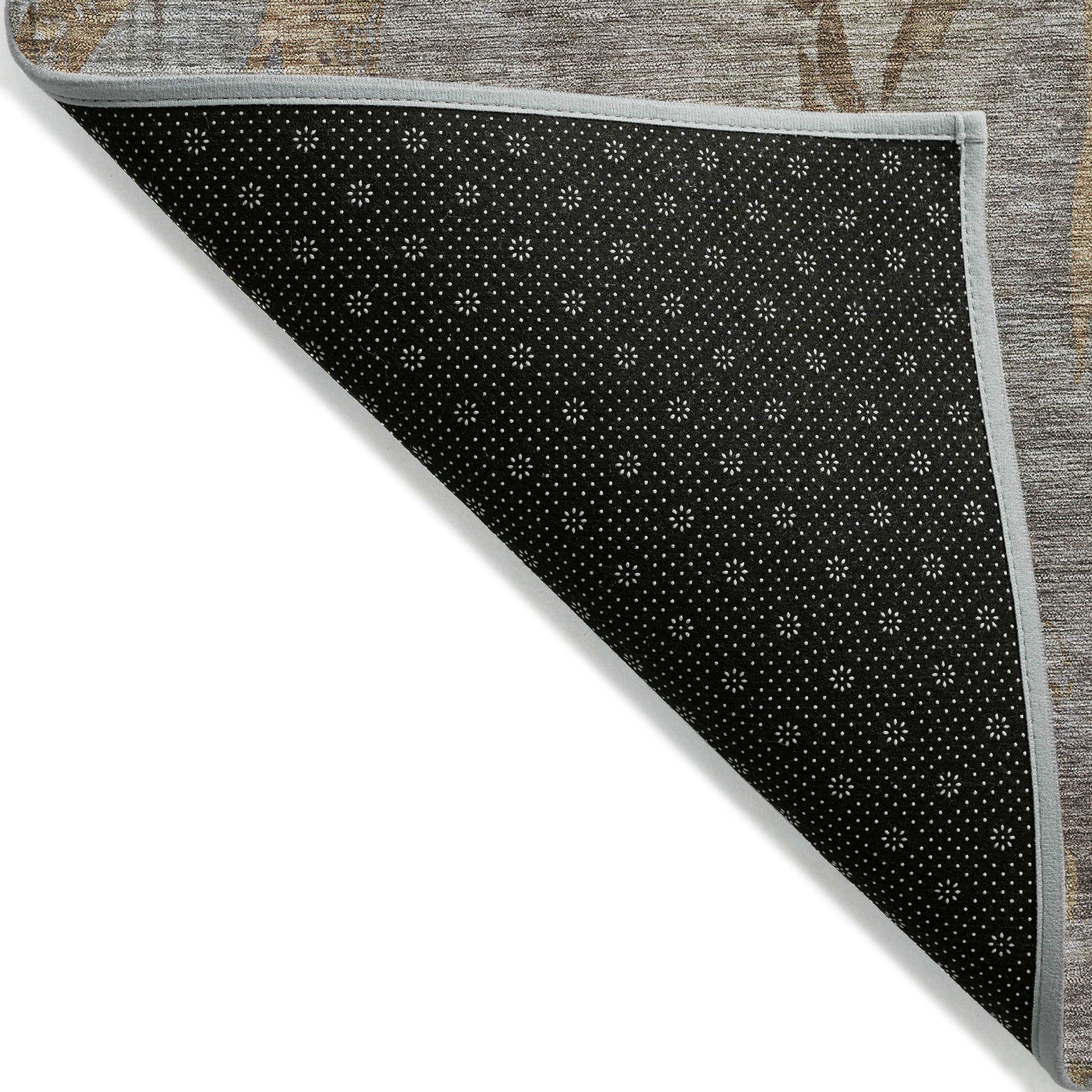 3' X 5' Khaki And Gray Botanical Leaves Washable Indoor Outdoor Area Rug