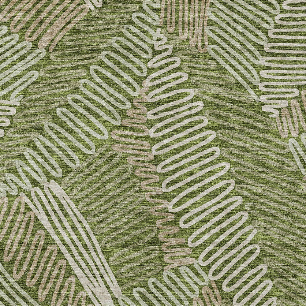 3' X 5' Olive Green Brown And Ivory Floral Washable Indoor Outdoor Area Rug
