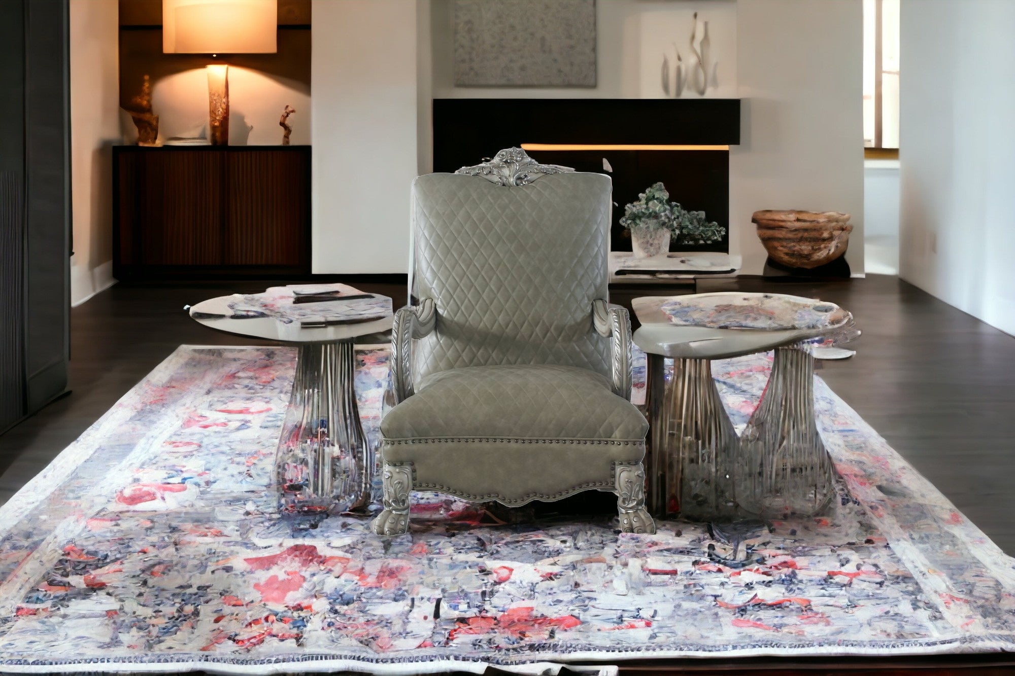 34" Bone Faux Leather Arm Chair Vai al contenuto