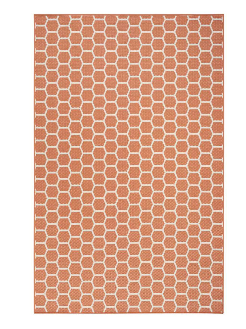 Add great coloration and comfortable texture to your space with this 4-foot x 6-foot coral and ivory geometric indoor outdoor area rug. This rectangle shaped rug features a geometric design that will work well both indoors or out. A classic shape marries with good looking design for your living room, hall, bedroom, porch, patio, or poolside. Makes a great way to dress up your patio, porch, or poolside, but also works well as a durable and easy to maintain option in the kitchen, family room, or mudroom. 72-inch h x 108-inch w x 0.23-inch d.